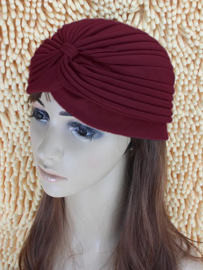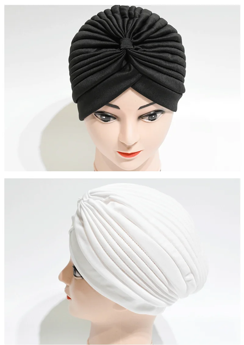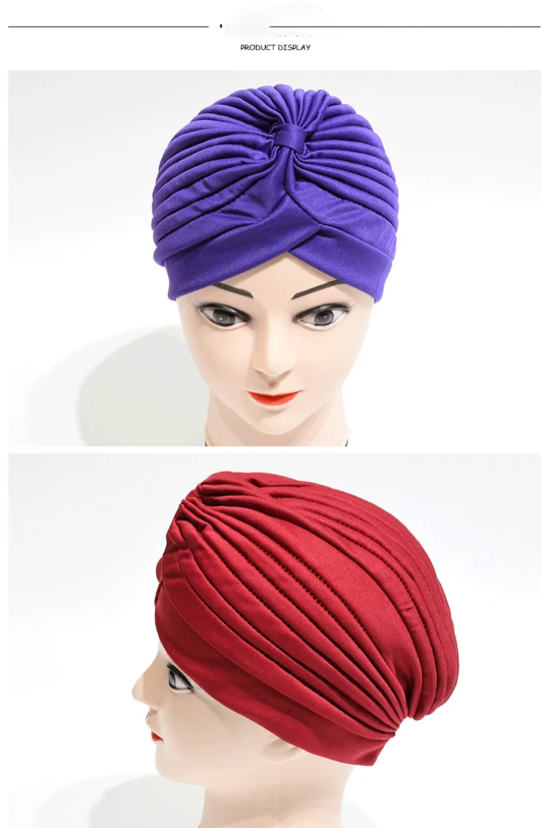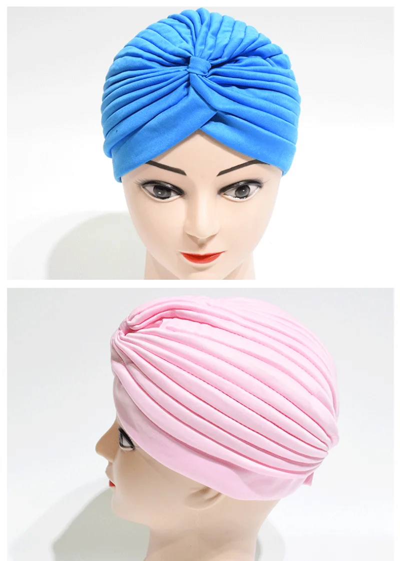 Женская регулируемая шапка для плавания, шапка для купания в бассейне, защищающая длинные волосы, тюрбан, плиссированная ткань, головной убор, шапка для йоги разных цветов