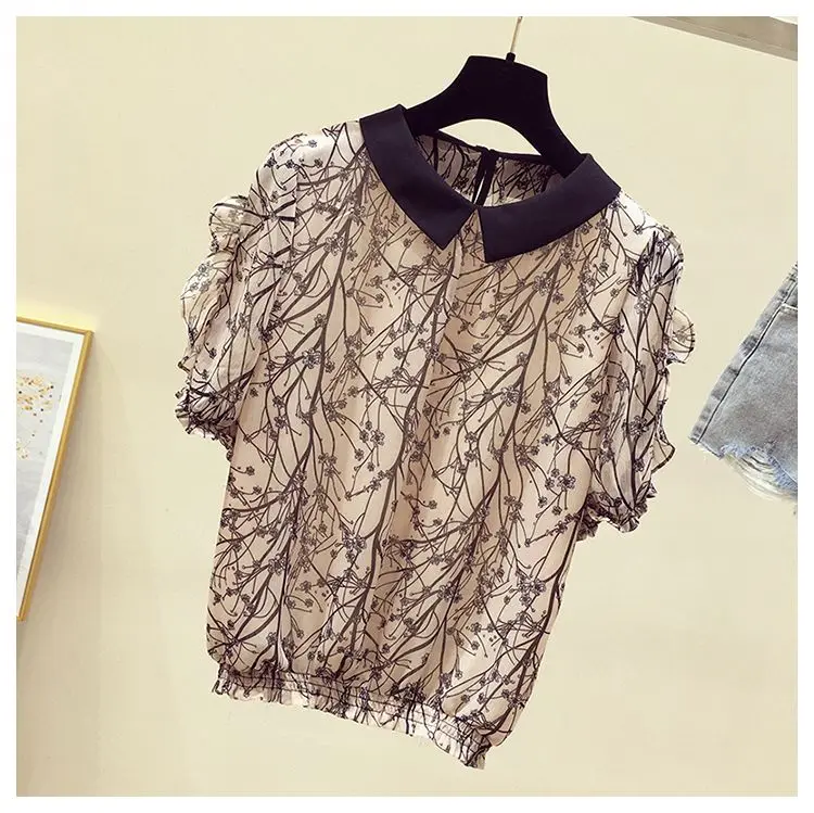 Женская шифоновая блузка с отложным воротником и оборками