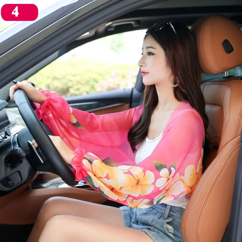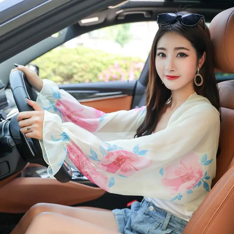 Женская шифоновая накидка на руку, летняя Солнцезащитная накидка с длинным рукавом и цветочным принтом, шали и шарфы для вождения