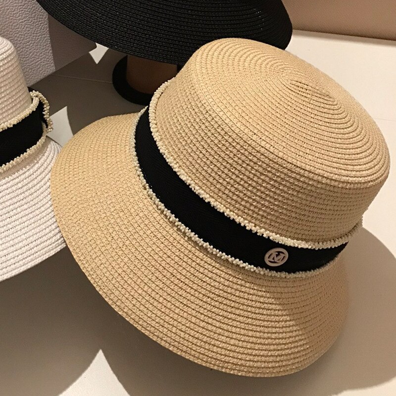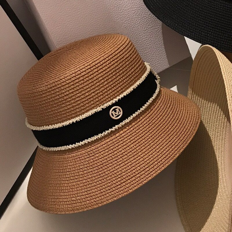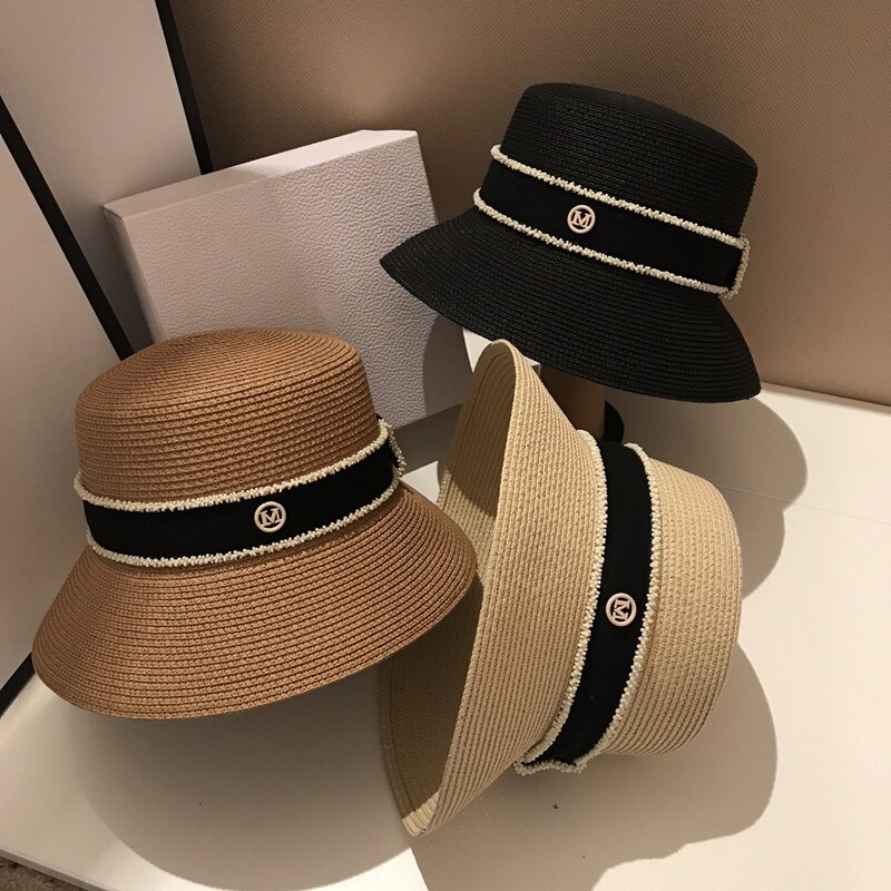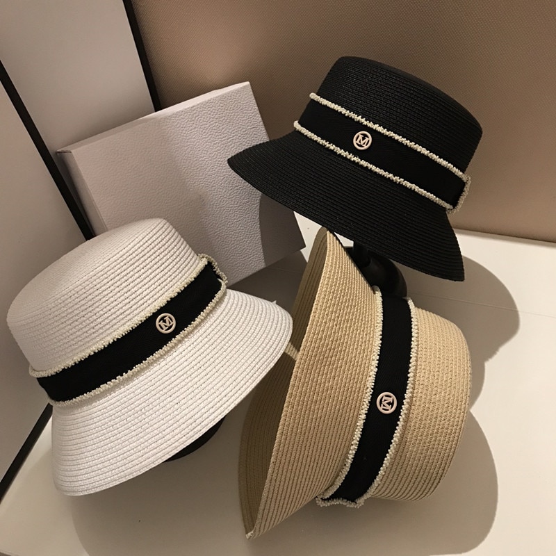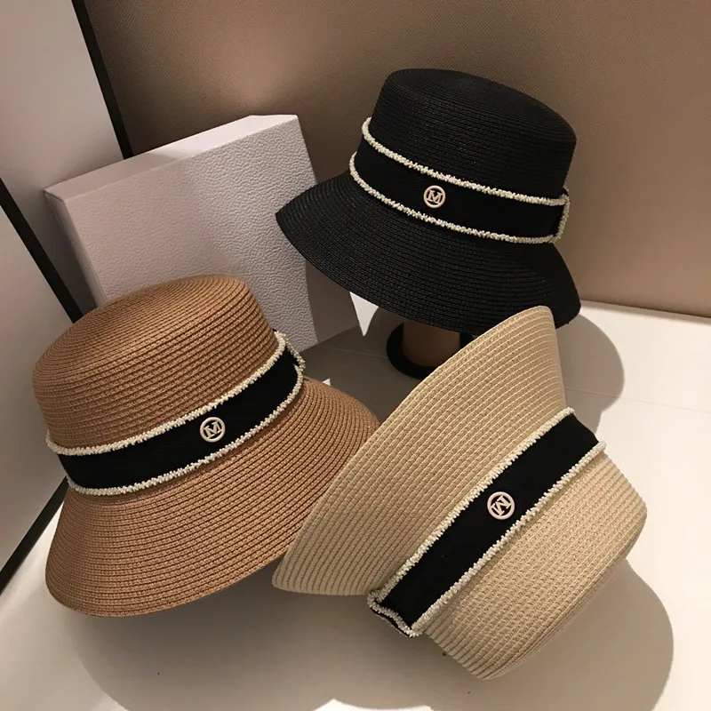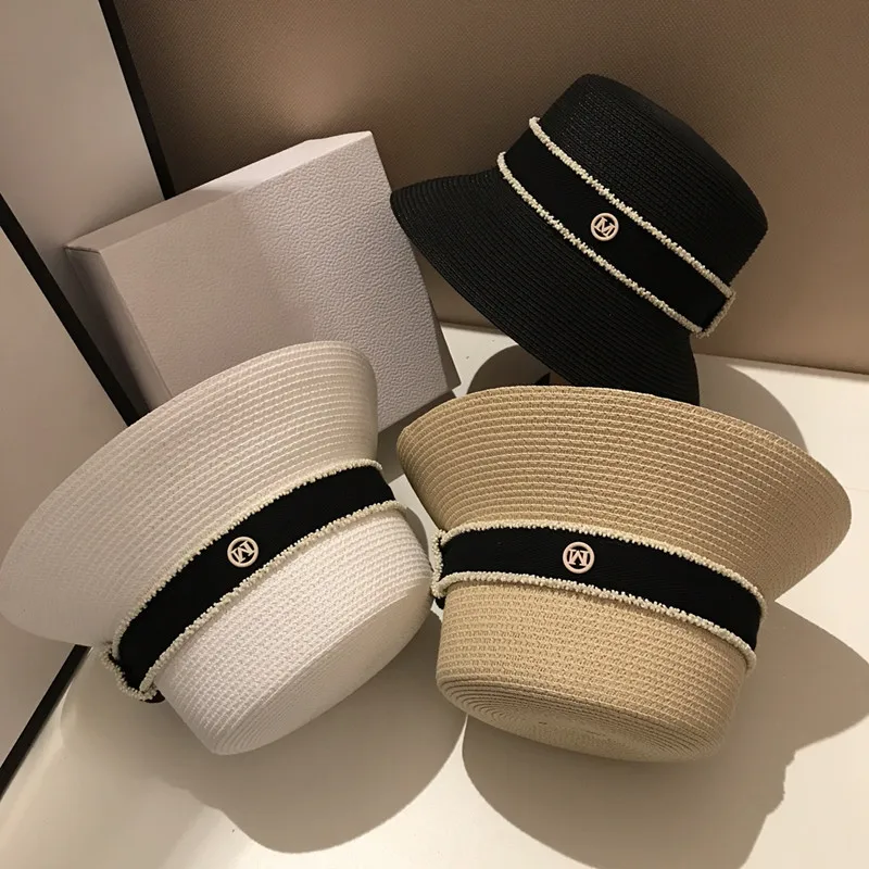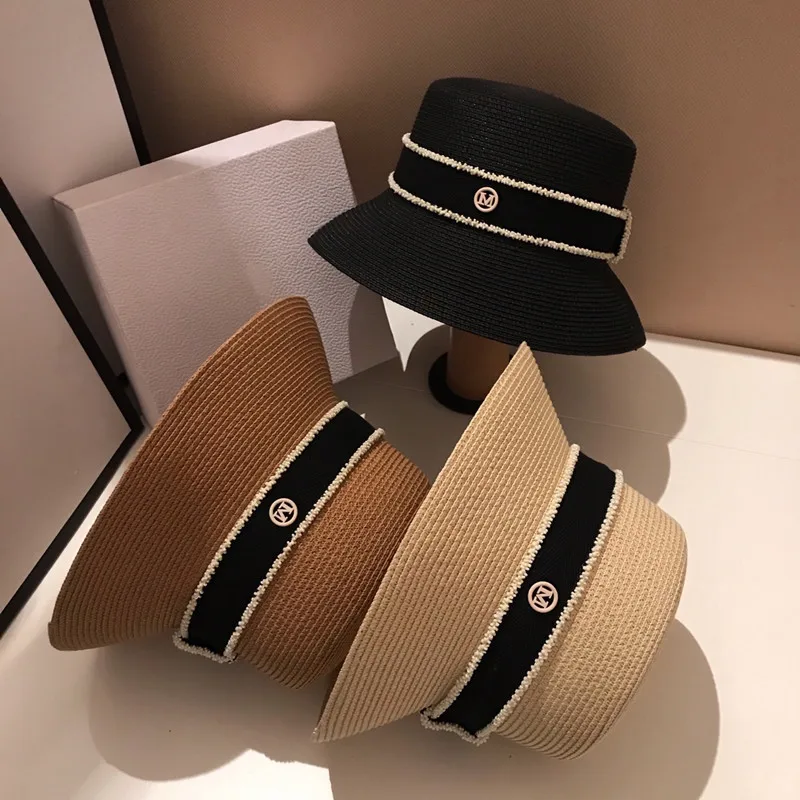 Женская Соломенная Панама с буквой M, летняя Солнцезащитная шляпа с маленькими полями, YF0580, 2022