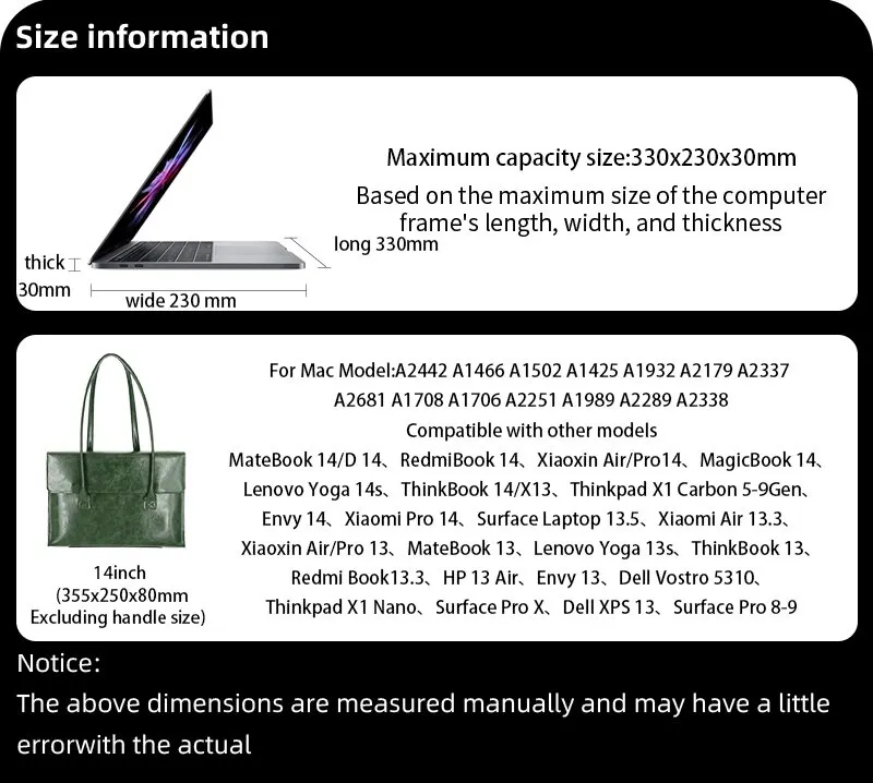 1. Размер не подходит для всех 14-дюймовых ноутбуков, только для некоторых ультратонких 13-14,2-дюймовых ноутбуков. Пожалуйста, обратитесь к списку ниже, чтобы купить!