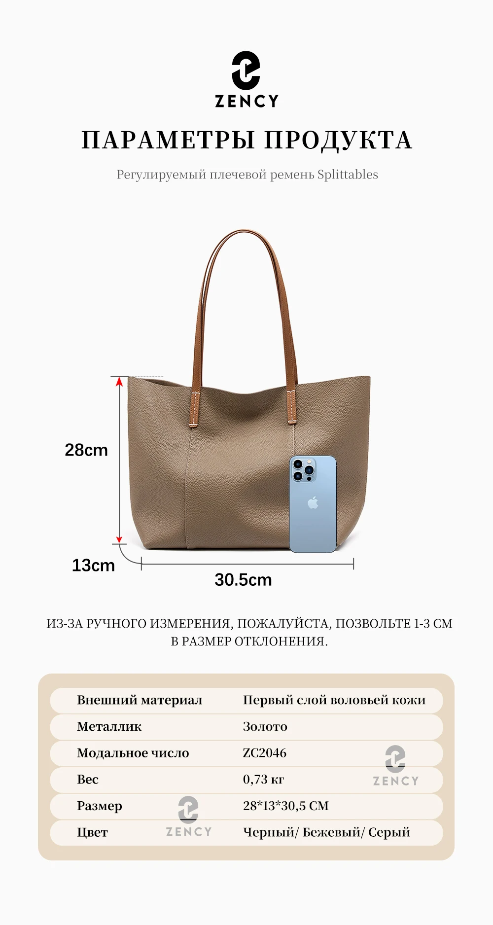Женская сумка-тоут Zency, сумка из натуральной кожи, вместительная сумка-шоппер из композитного материала, большой карман для путешествий, школьные книги, ключи для Ipad