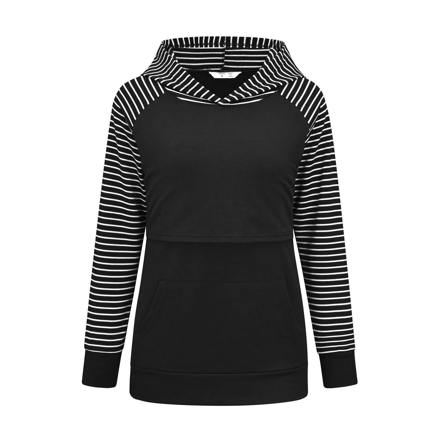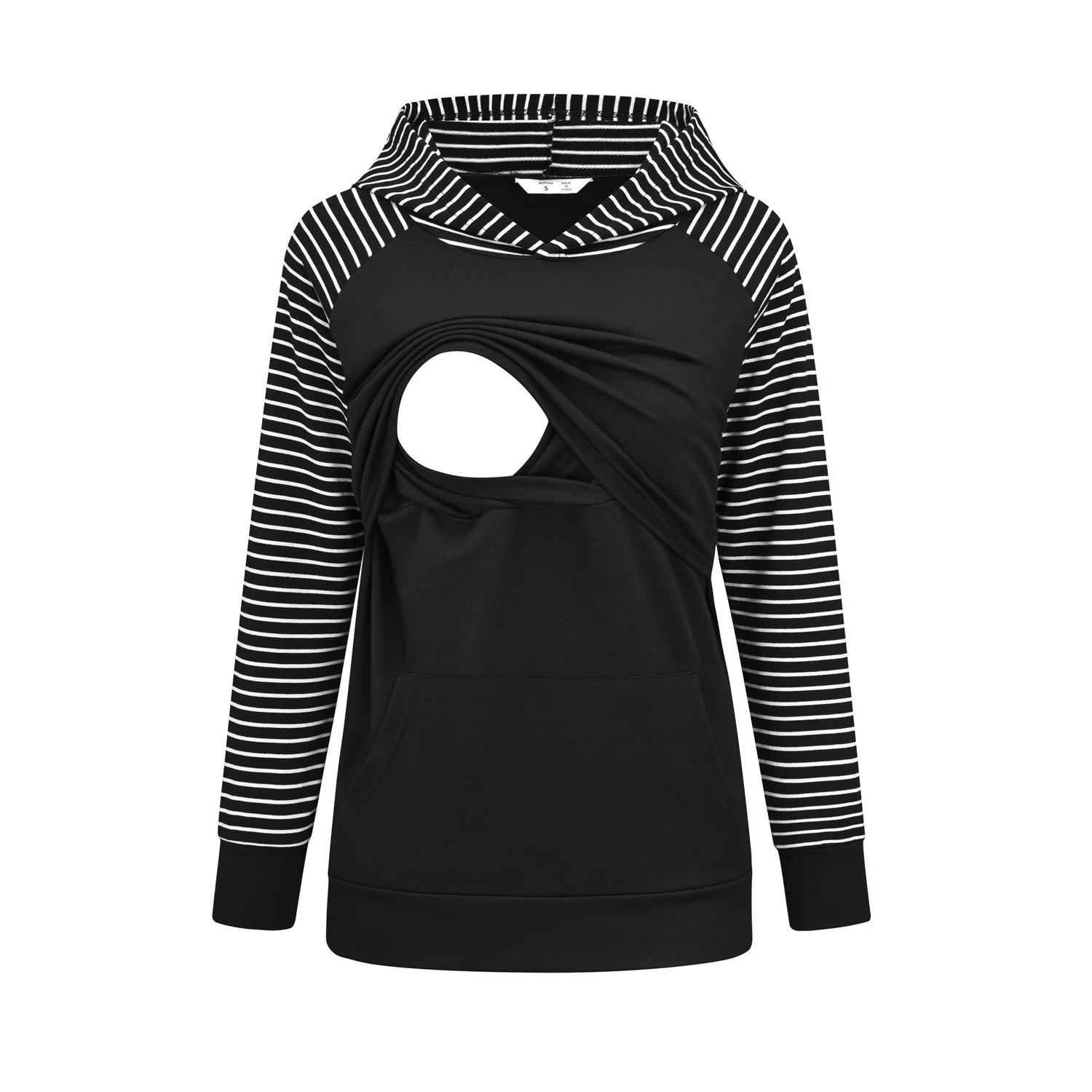 Женская толстовка с капюшоном, свитшоты для беременных с длинным рукавом, полосатые топы для кормящих женщин