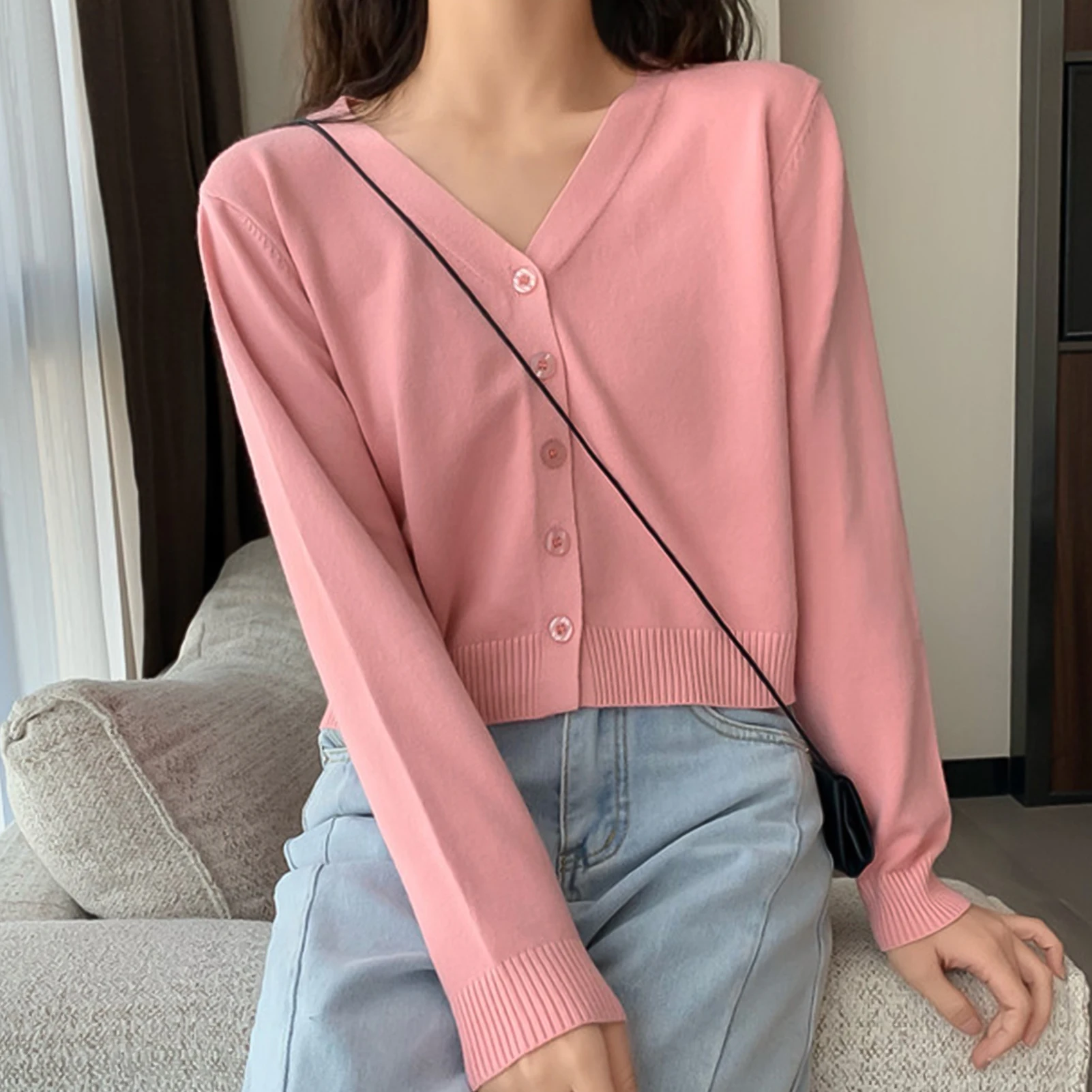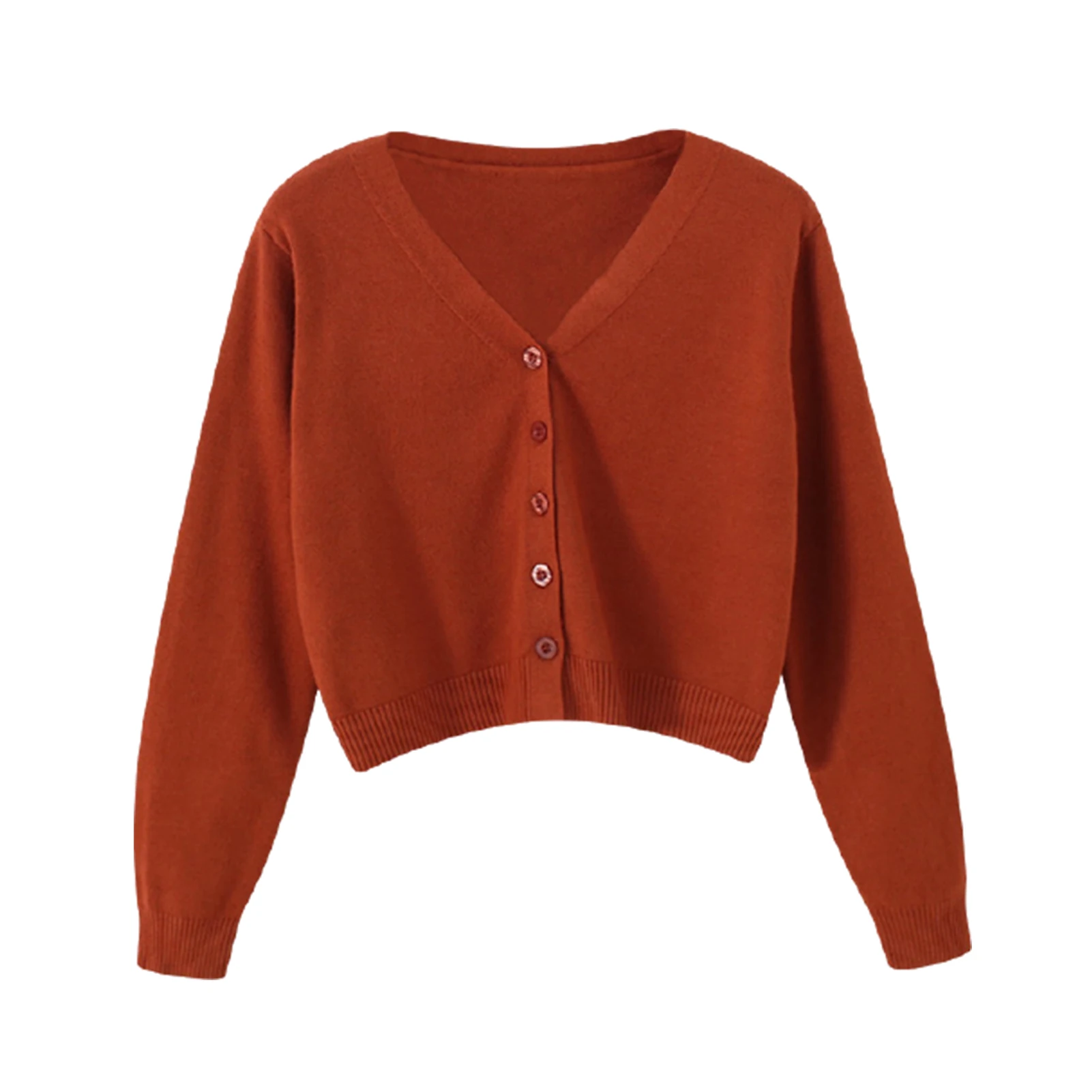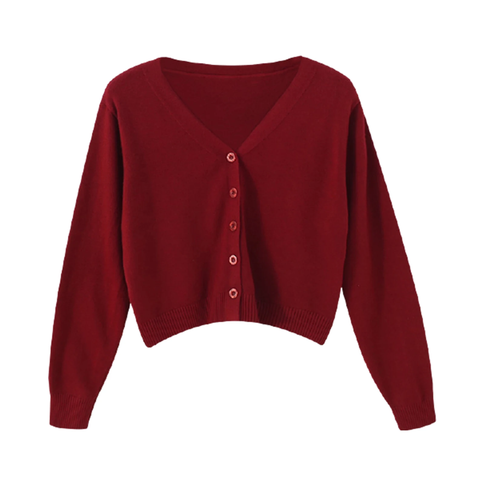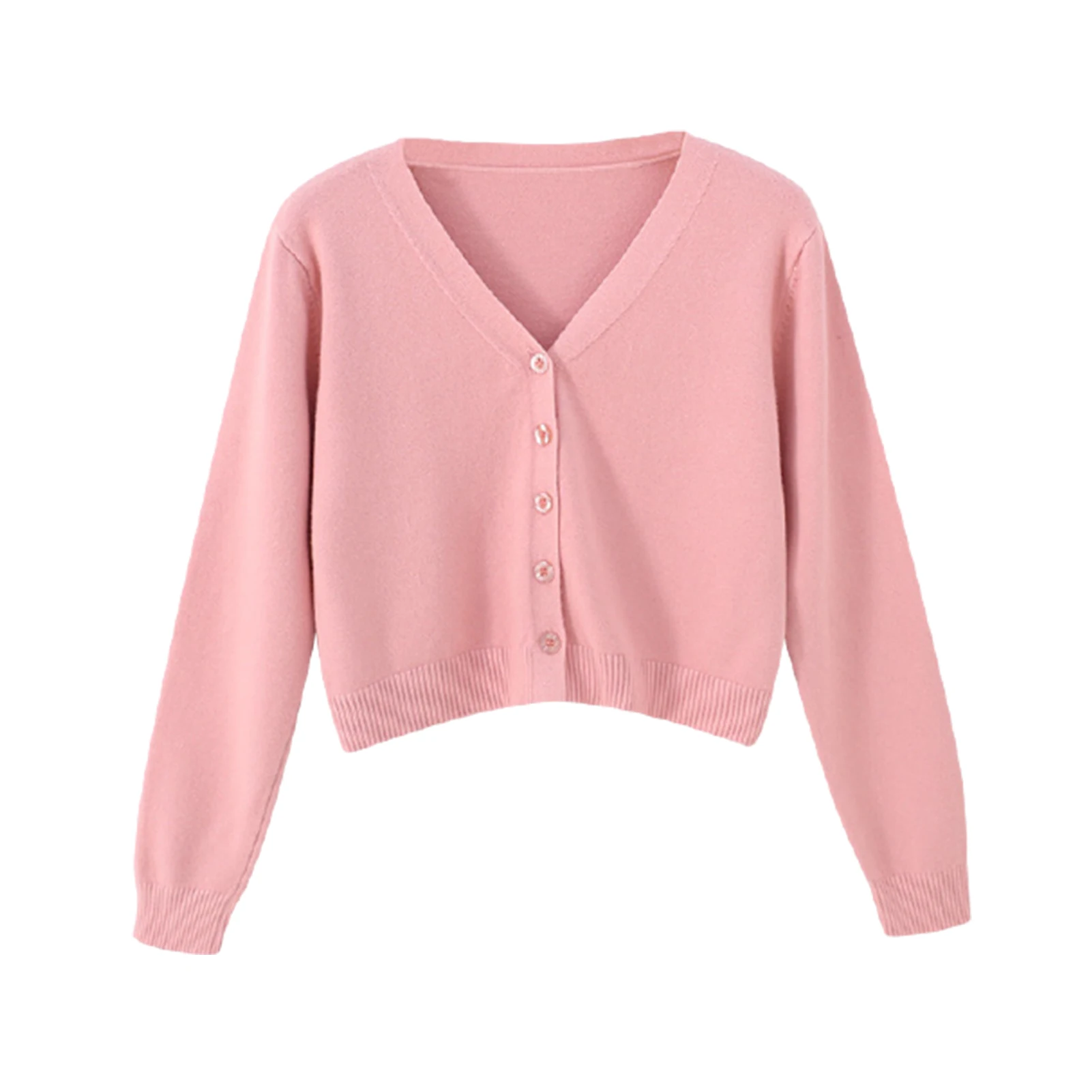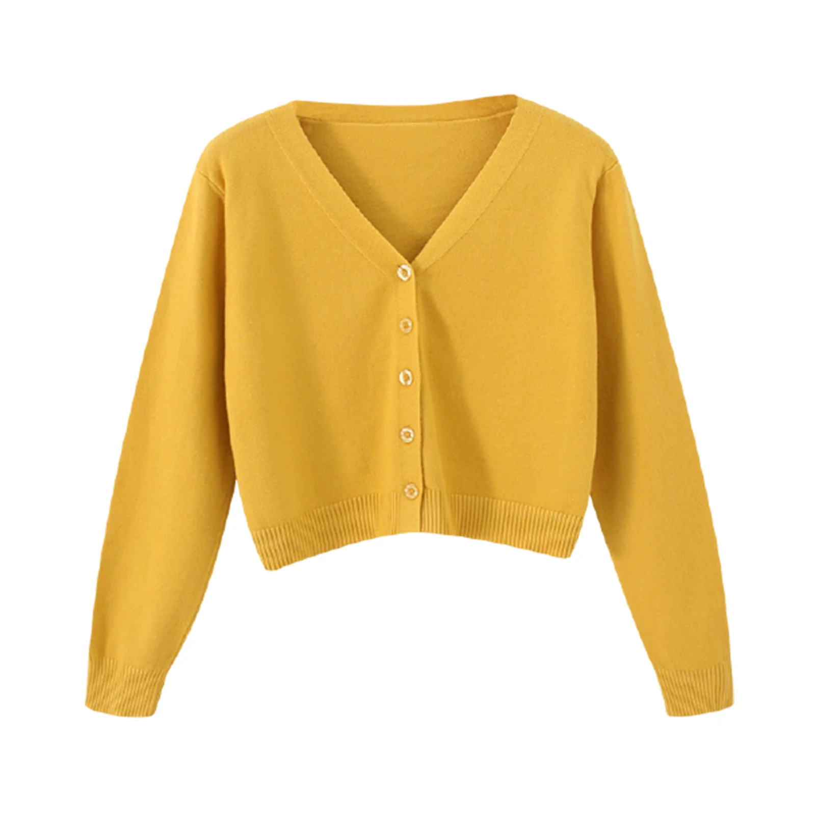 Женский однотонный Кардиган с длинным рукавом и v-образным вырезом, свитер на пуговицах, короткий трикотаж