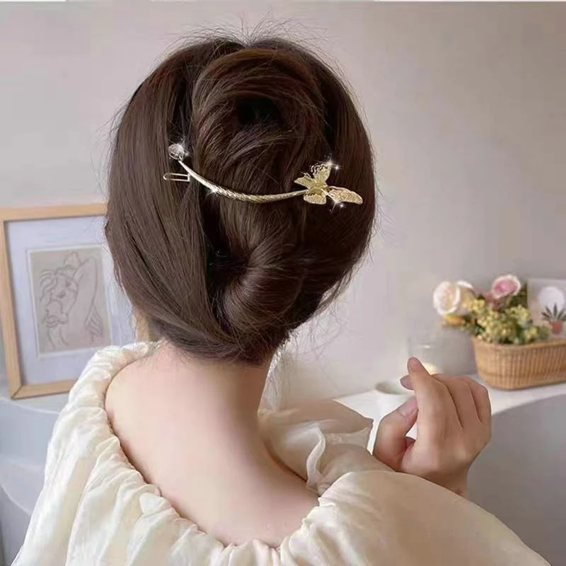 Женская заколка-застежка для волос, с жемчужинами и бабочками