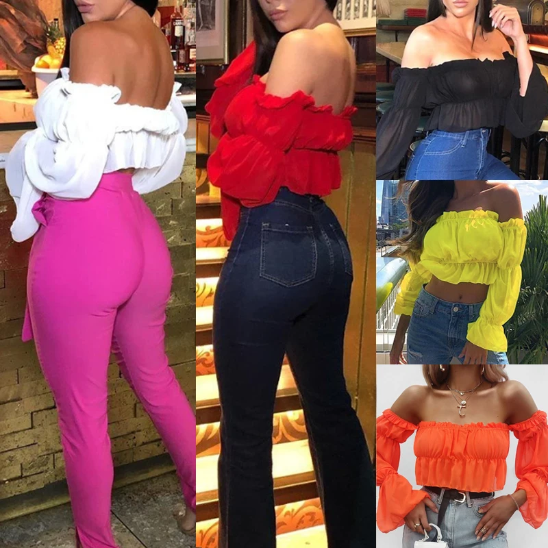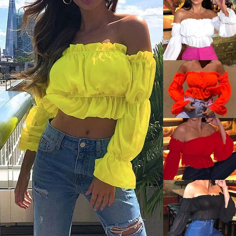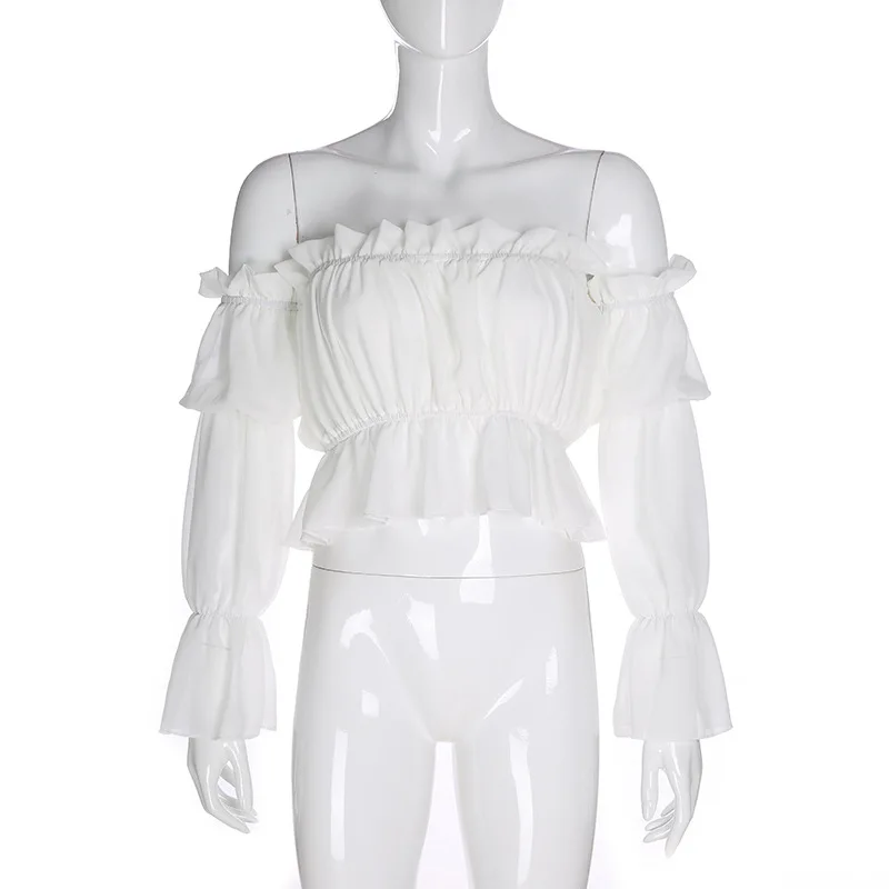 Женские блузки с открытыми плечами, новинка 2020, прозрачная сетчатая офисная рубашка с пышными длинными рукавами, блузка, повседневные топы, размера плюс Blusas Femininas