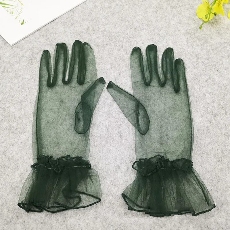 Женские черные пикантные Короткие Прозрачные тюлевые перчатки ультратонкие свадебное платье невесты с длинным рукавом винтажные прозрачные перчатки с защитой от УФ-лучей