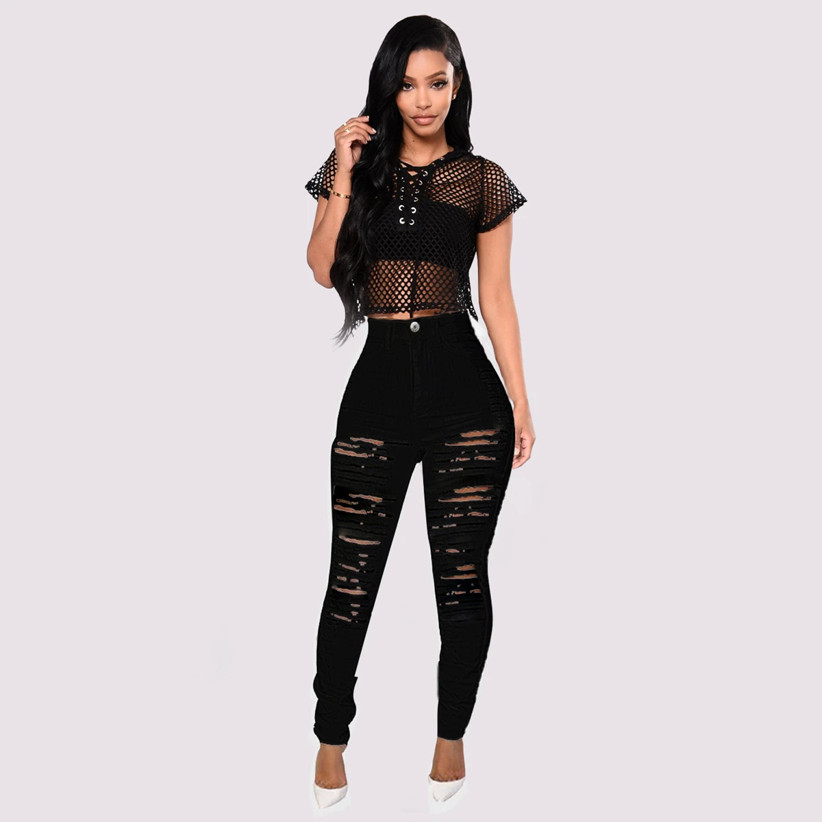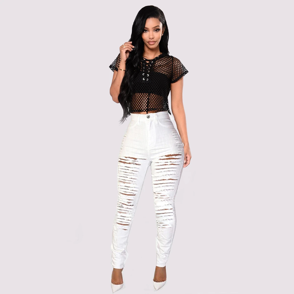 Женские джинсовые леггинсы y2k, эластичные леггинсы с высокой талией, повседневные облегающие однотонные длинные джинсы с дырками, привлекательные узкие брюки