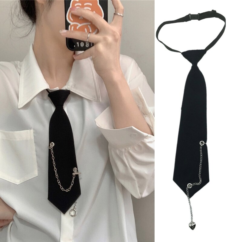 Женские и мужские готические черные галстуки с металлической цепочкой в стиле панк рубашка в японском стиле школьная униформа для студентов