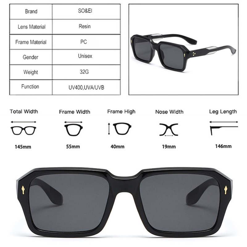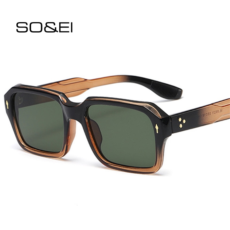 Женские и мужские винтажные квадратные очки SO & EI, модные двухцветные трендовые солнцезащитные очки в стиле панк с заклепками и градиентными линзами UV400