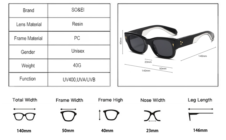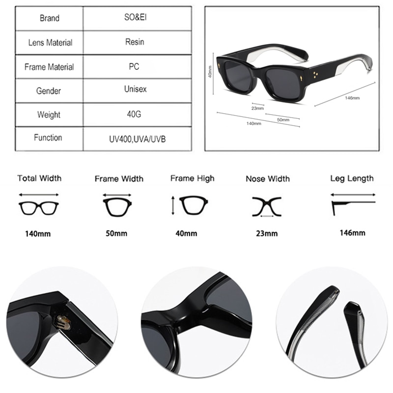 Женские и мужские винтажные очки с заклепками SO & EI, квадратные солнцезащитные очки с широкими дужками, модные трендовые солнцезащитные очки в стиле панк двойного цвета с защитой UV400