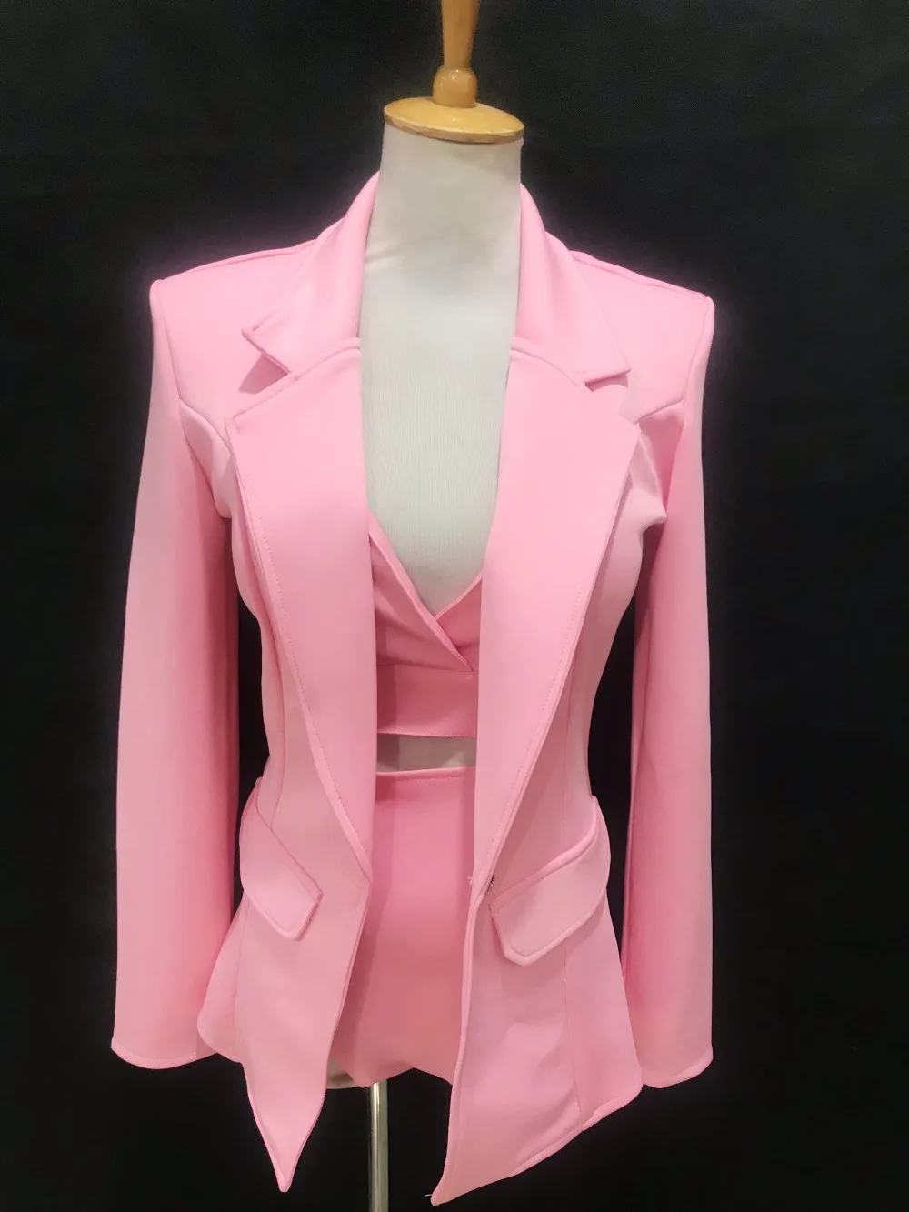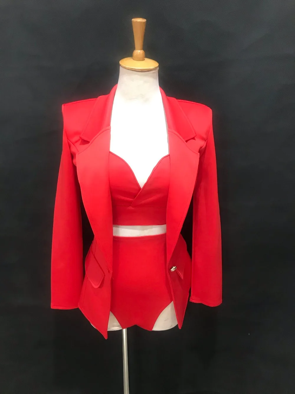 Женские костюмы, костюм для современных танцев, красный, розовый комплект из бюстгальтера, пиджака, шорт, комплект из 3 предметов, костюм для джазовых танцев, команд, выступлений, сценического клуба, диджея
