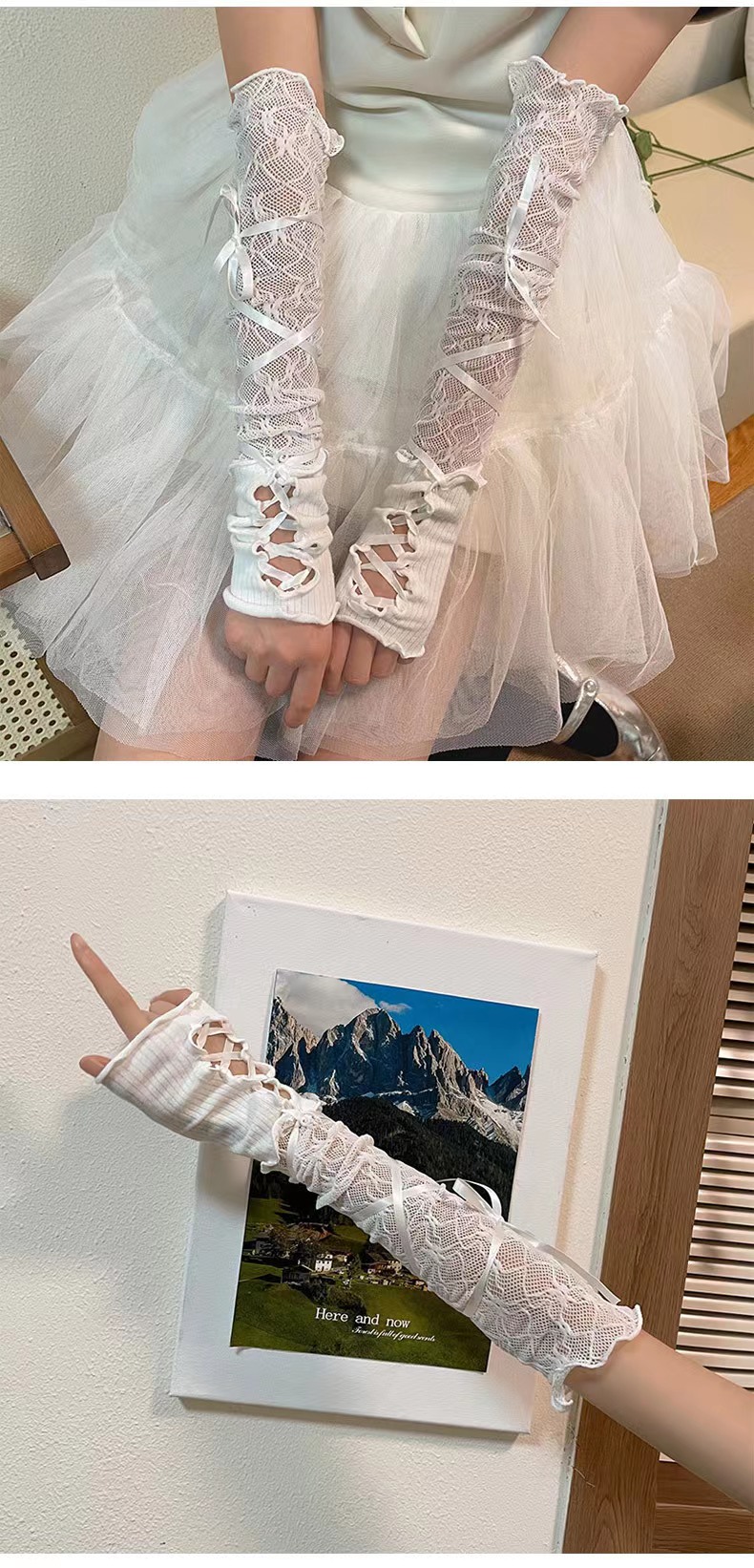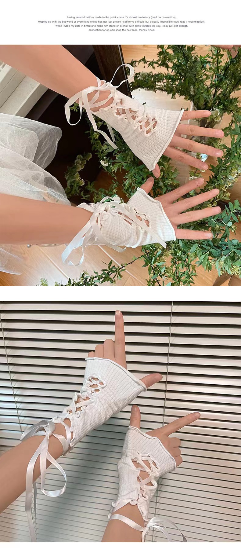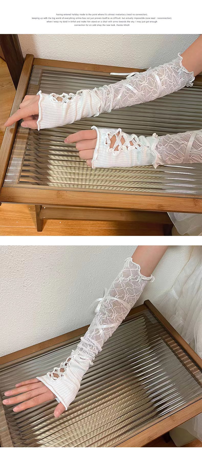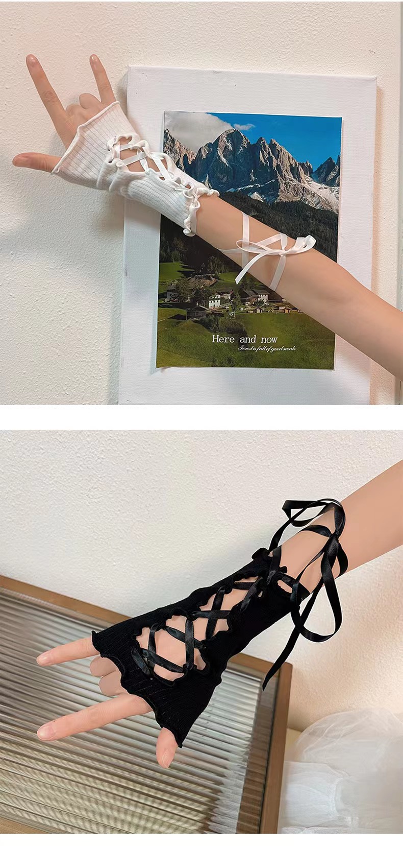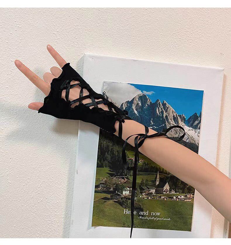 Женские кружевные перчатки без пальцев Lolita Jk милые пряные DIY ремешки полые солнцезащитные перчатки в стиле панк