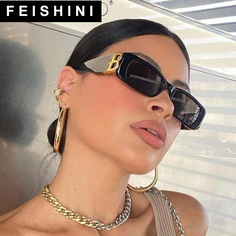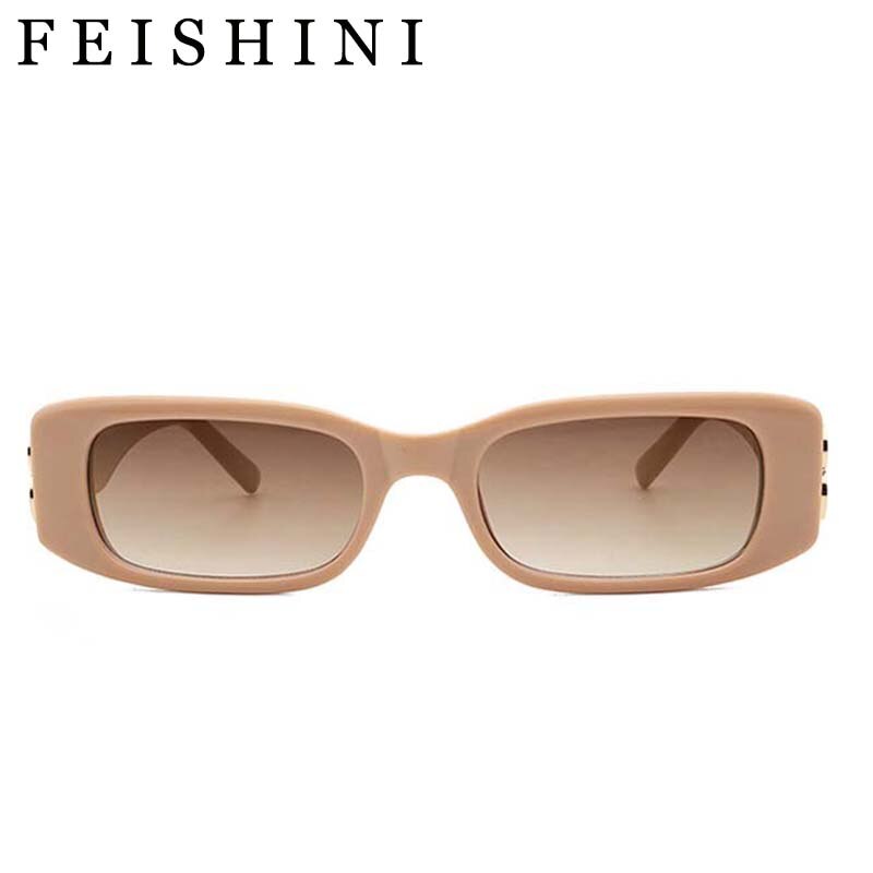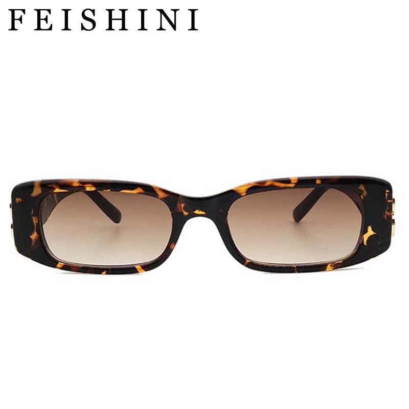 Женские квадратные солнечные очки FEISHINI, новые модные роскошные трендовые солнечные очки в стиле ретро, узкие прямоугольные Брендовые женские солнечные очки