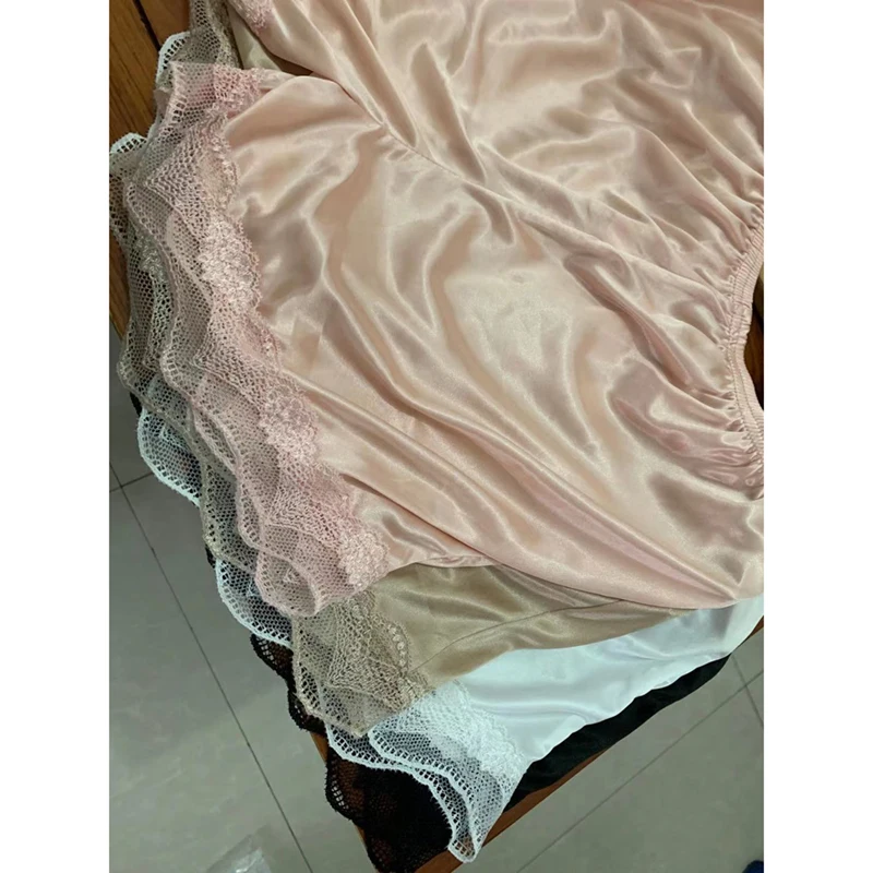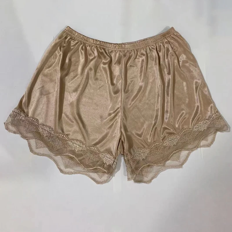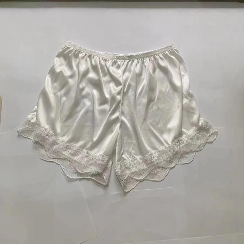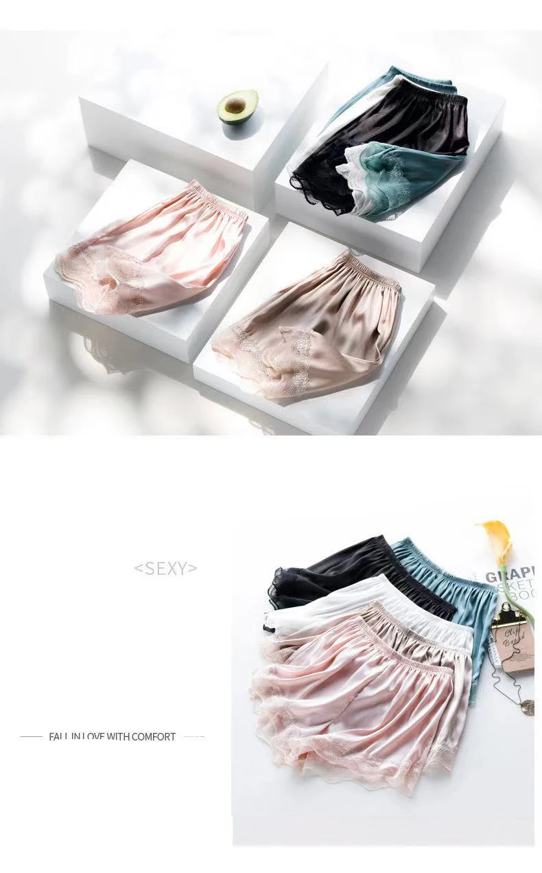 Женские летние шелковые шорты, сексуальные кружевные трусы в стиле пэчворк, Элегантная атласная Нижняя юбка, домашняя одежда, однотонные боксеры, шорты