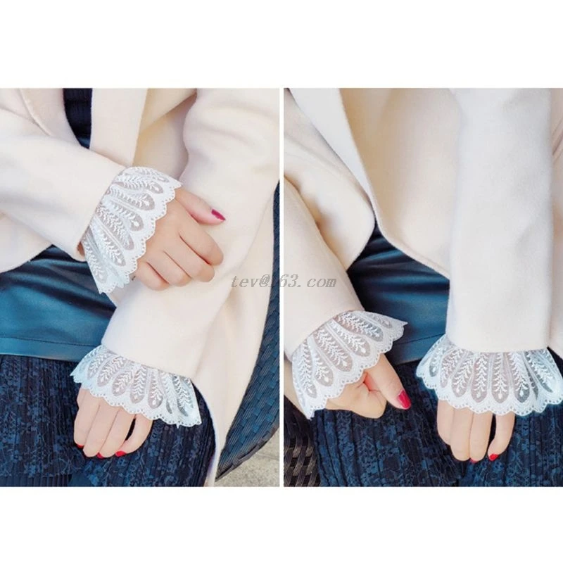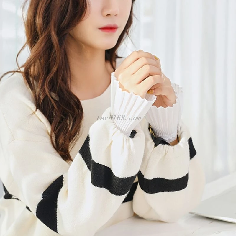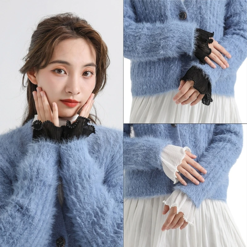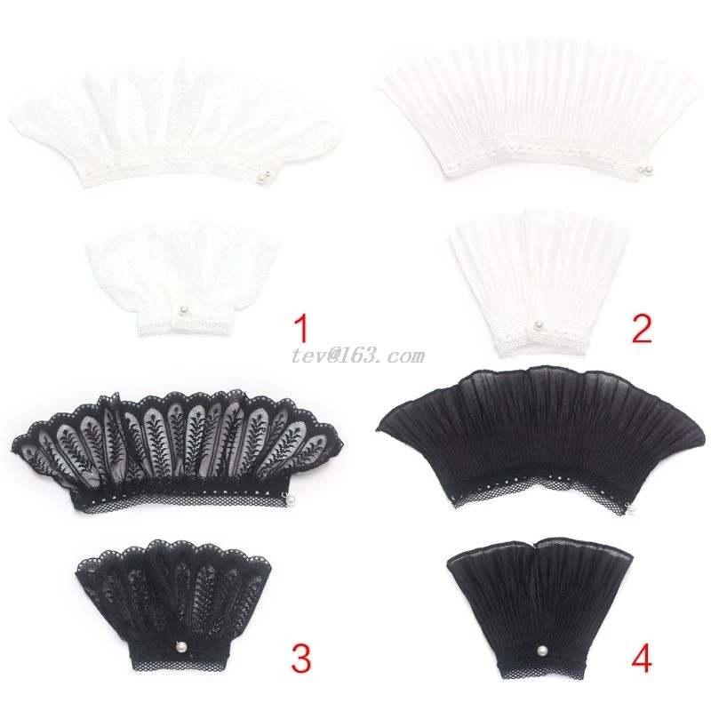 2Pcs/Pair 4 Styles Women Girls Fake Flare Sleeves Floral Lace Pleated Ruched False Cuffs Sweater Blouse Apparel Wrist Warmers With Faux Pearl Button