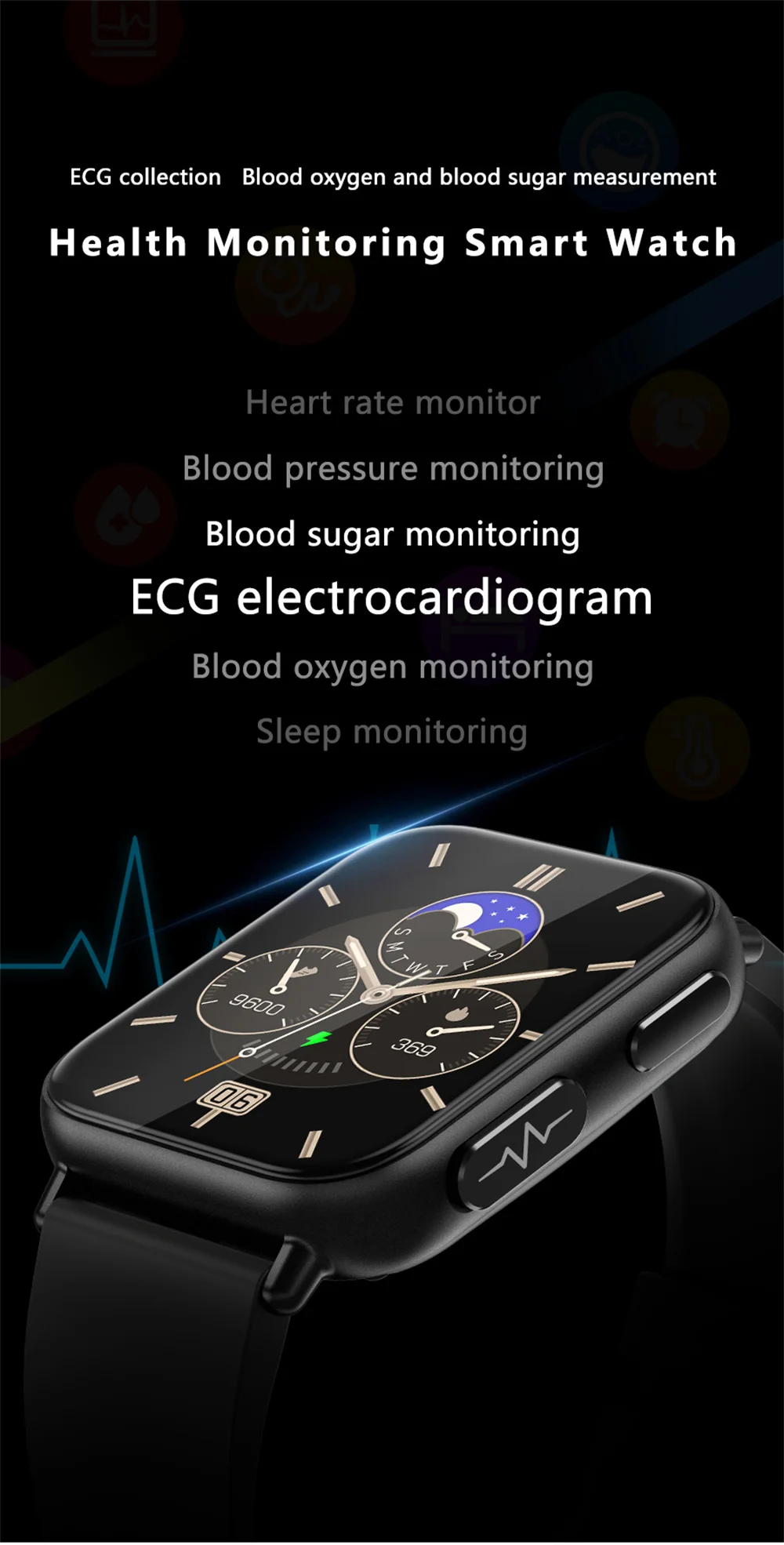 «Неинвазивный уровень глюкозы в крови, ЭКГ, двойное динамическое непрерывное определение частоты сердечных сокращений PD + 1,91-дюймовый полный сенсорный экран, функция ЭКГ, медицинская диагностика AI, мониторинг температуры, мониторинг кислорода в крови, частота дыхания."