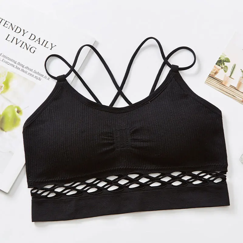 Женские нейлоновые бюстгальтеры с перекрестными бретельками, 1 шт., сексуальная бесшовная женская кофта с вырезами, топ для фитнеса, однотонное женское нижнее белье