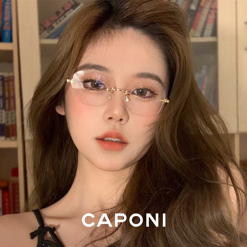 Женские очки без оправы CAPONI, очки из чистого титана, модные трендовые фотохромные компьютерные очки синего цвета с фильтром BF31429