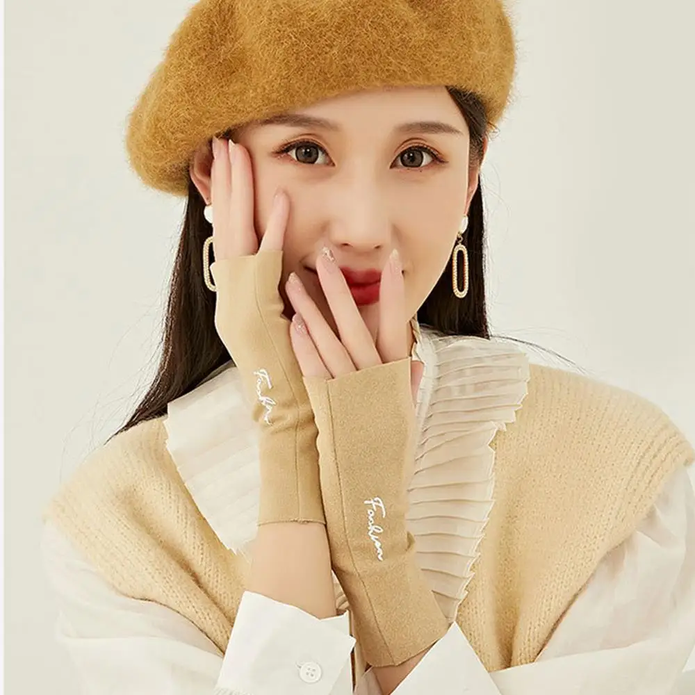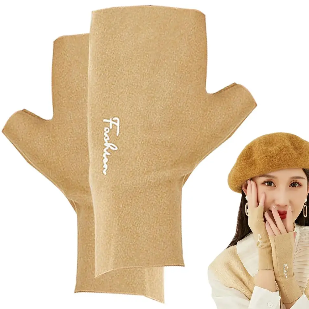 Женские перчатки с открытыми пальцами, зимние перчатки для сенсорного экрана, Нескользящие теплые перчатки с подкладкой, перчатки для письма с эластичными манжетами, теплые перчатки