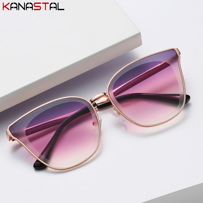 Женские поляризованные солнцезащитные очки UV400, градиентные Модные антибликовые солнцезащитные очки, металлическая фоторамка, для кемпинга