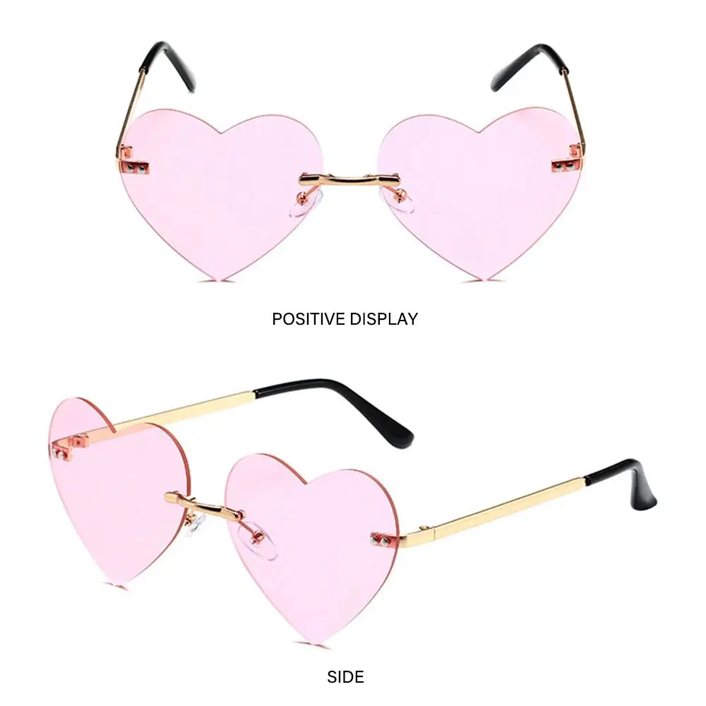 Женские солнцезащитные очки без оправы в форме сердца, винтажные металлические солнцезащитные очки для женщин, аксессуары для вечеринки, косплей-костюм