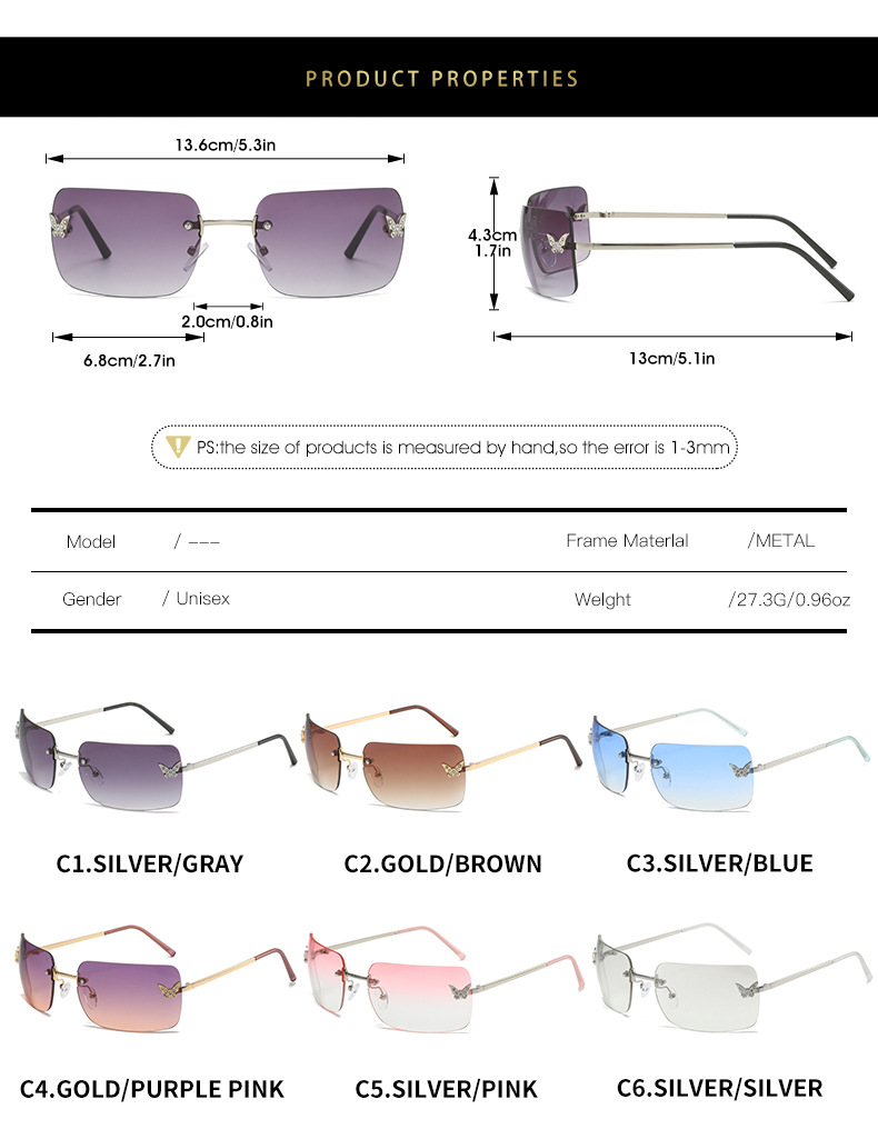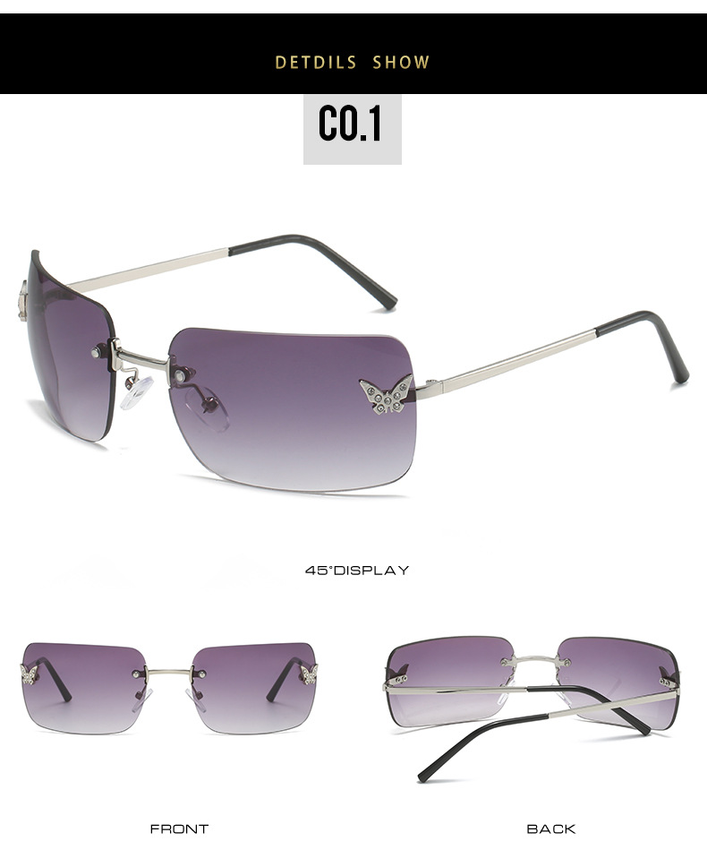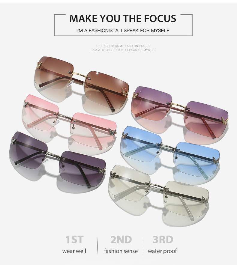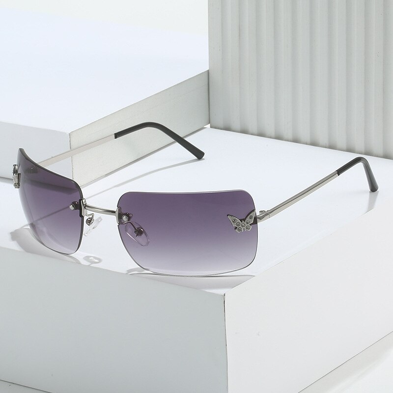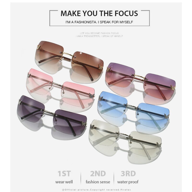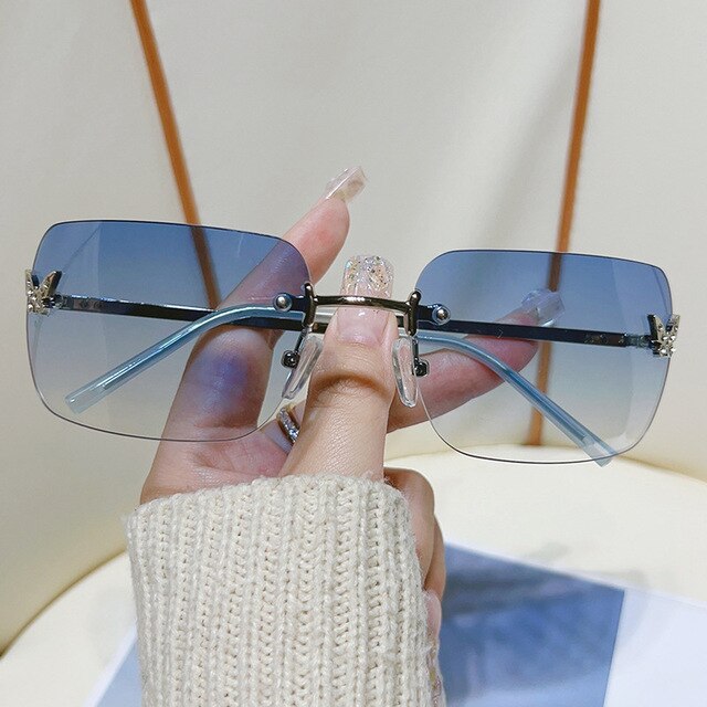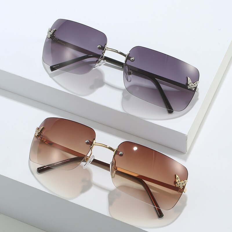 Женские солнцезащитные очки без оправы, винтажные поляризационные прямоугольные очки с градиентными линзами UV400, для путешествий, лето 2023