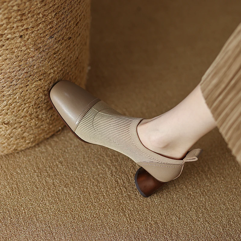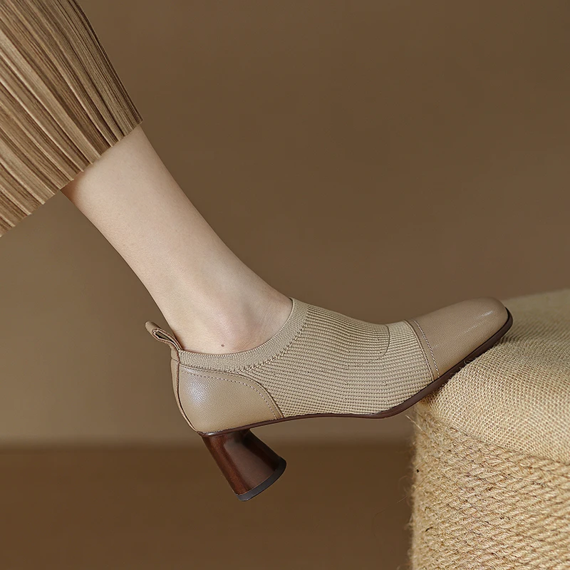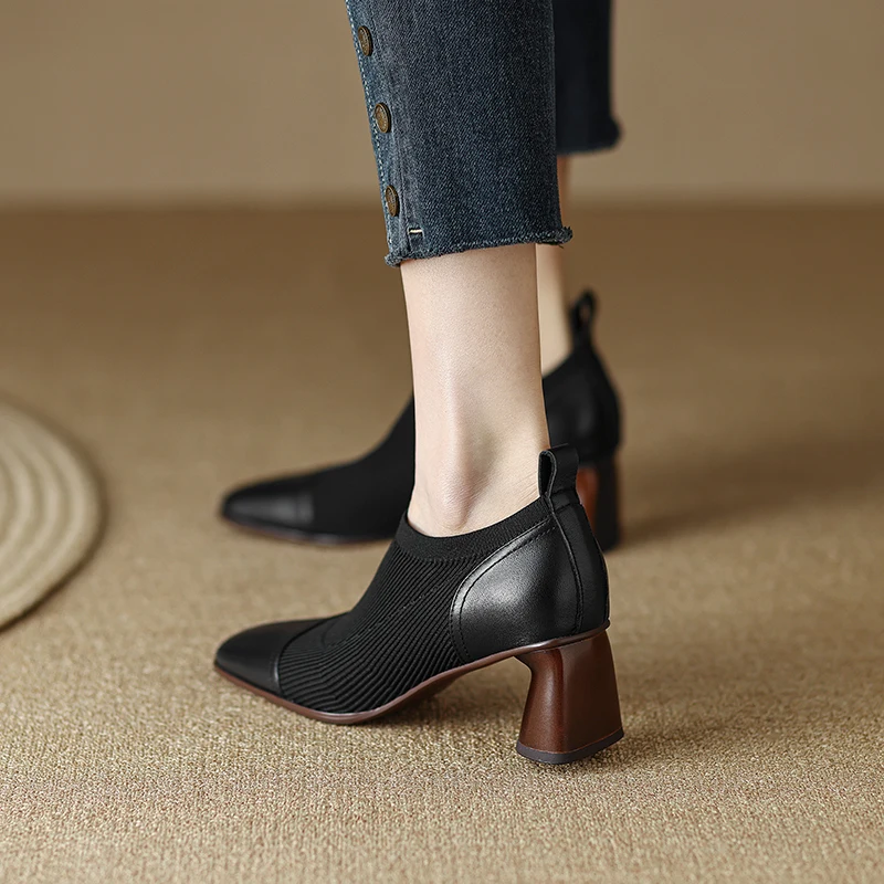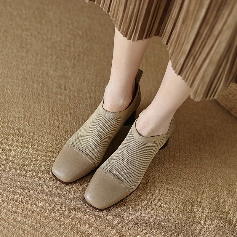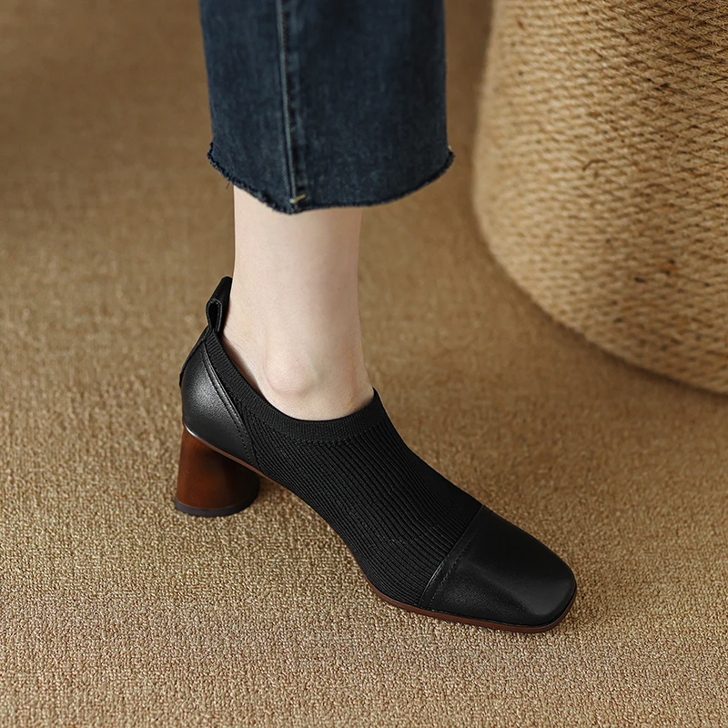 Женские туфли-лодочки из натуральной кожи, с квадратным носком