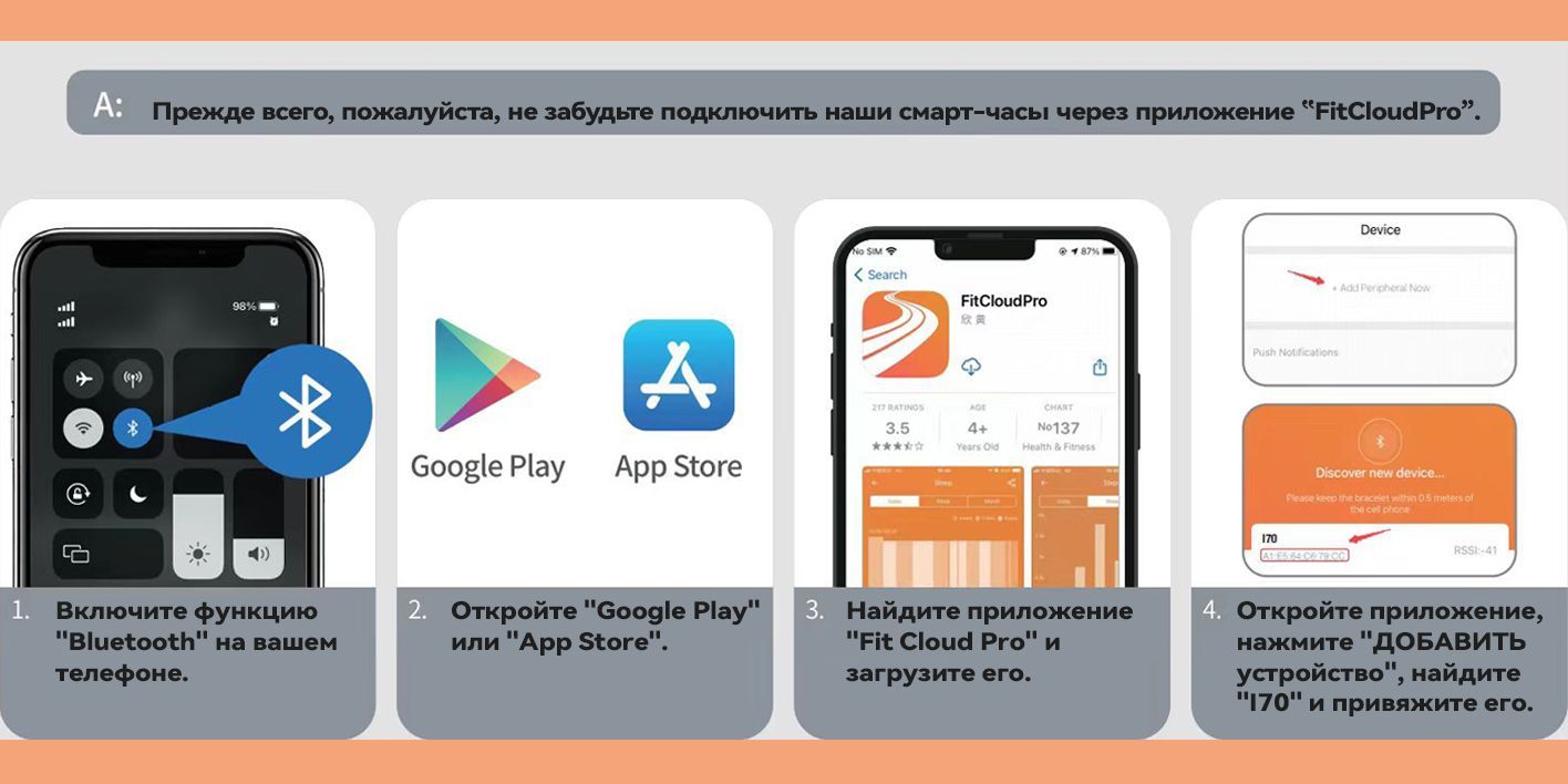 Как подключиться к вашему телефону Скачайте и установите приложение "FitCloudPro" на свой телефон.После входа в программу все разрешения (приложение получает доступ к телефону для отправки и просмотра информации, информации о местоположении устройства, совершения звонков и управления ими, журналов вызовов, информации об устройстве и т.д.) будут предоставлены и подключены к смарт-часам в приложении.