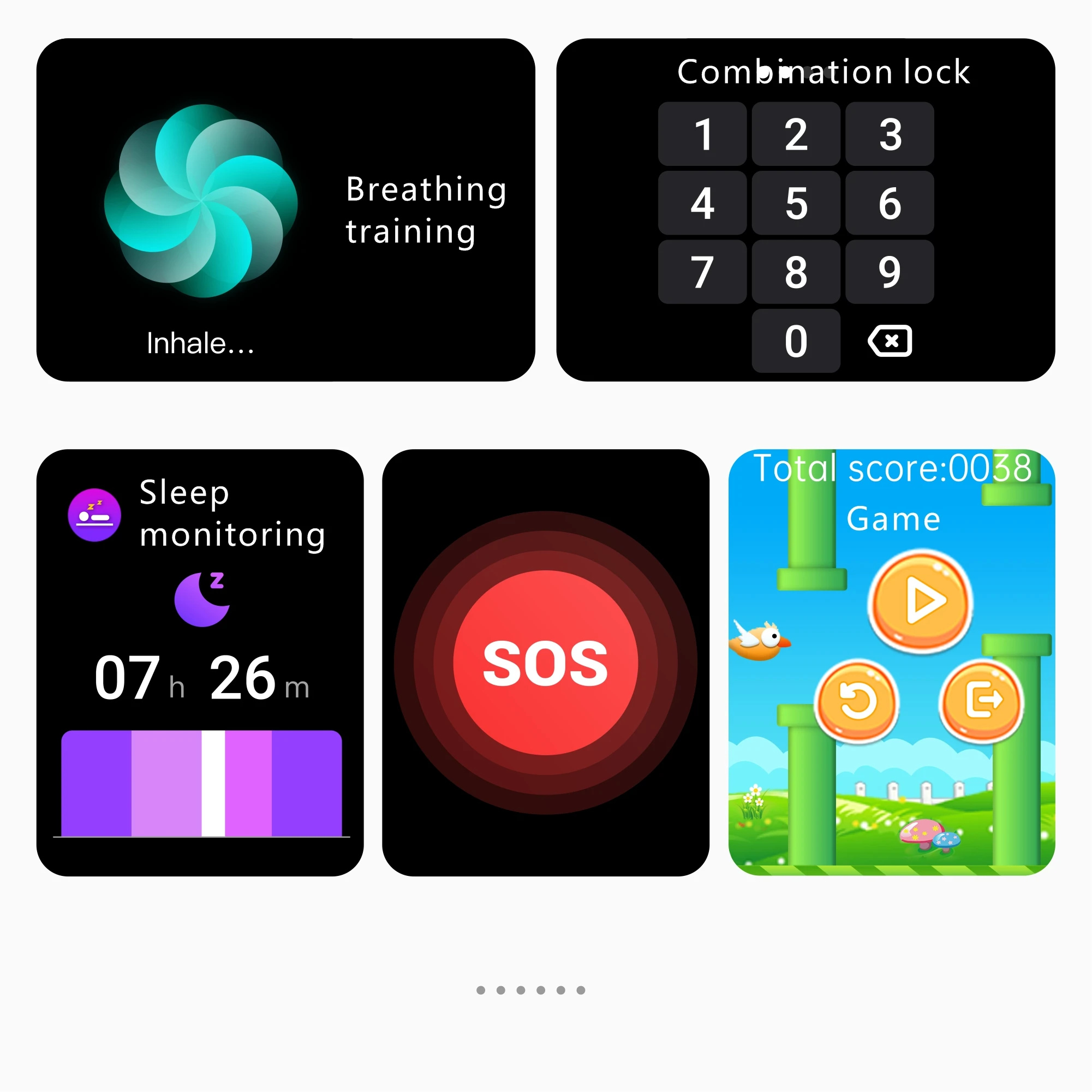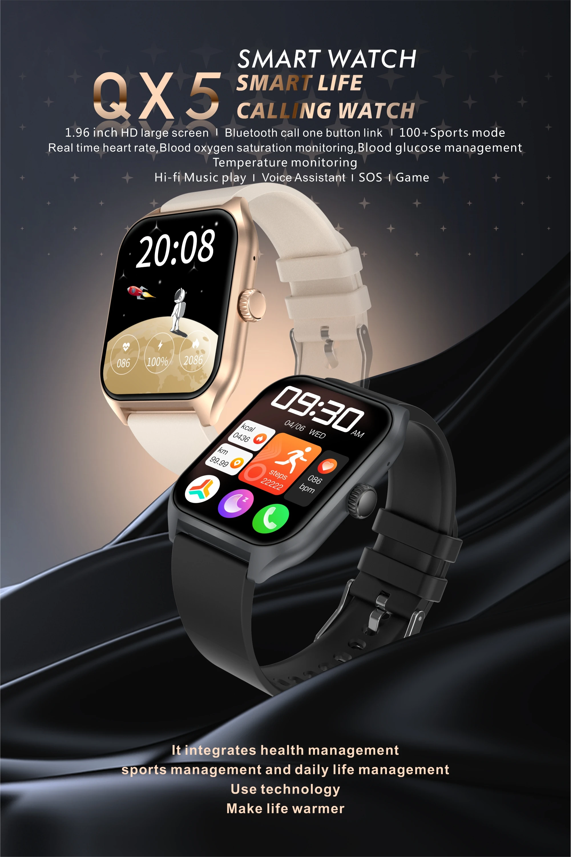 Мониторинг сердечного ритма, мониторинг уровня глюкозы в крови, ссылка одной кнопкой, вызов Bluetooth, насыщение крови кислородом, артериальное давление, проверка температуры, регулировка яркости, практика дыхания, голосовой помощник, поднятие руки на экран, несколько спортивных режимов, погода, фонарик, дисплей часов, будильник, SOS, игры, Калькулятор, женский менструальный цикл, музыка, многофункциональный циферблат, обои с циферблатом, напоминание о долгом сидении, режим не беспокоить, поиск браслетов, удаленная фотография, мониторинг сна, шаг, калории