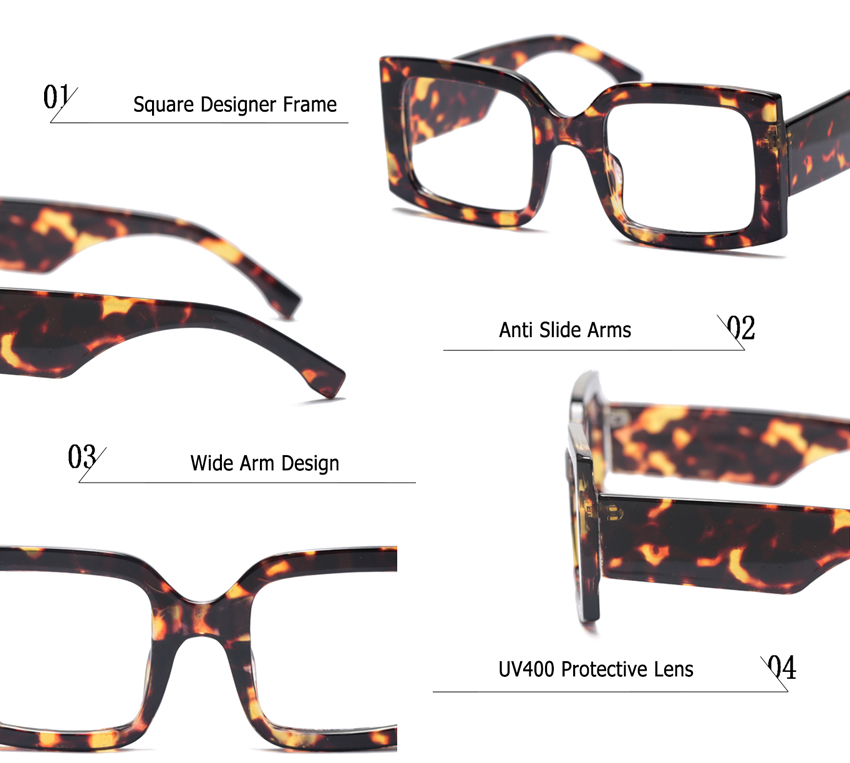 -Высококачественная квадратная оправа с широкими дужками и прозрачными линзами