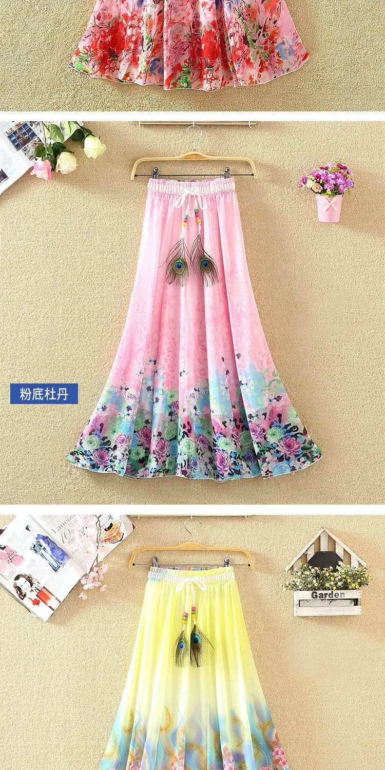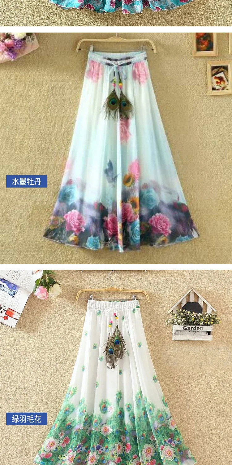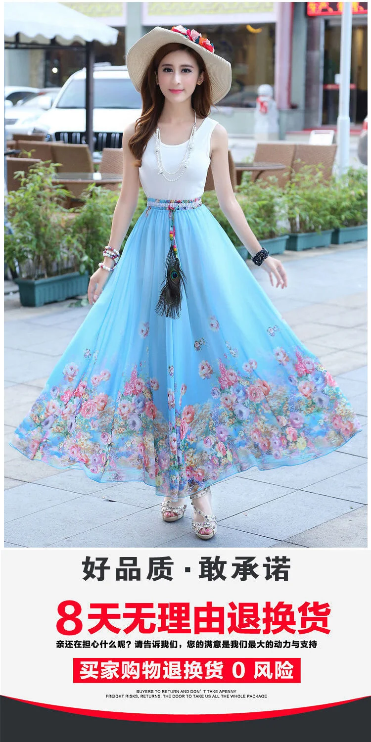 [Стоимость возврата упаковки] 2021 летняя новая юбка с принтом в этническом стиле, пляжная юбка, шифоновое платье феи с цветочным рисунком