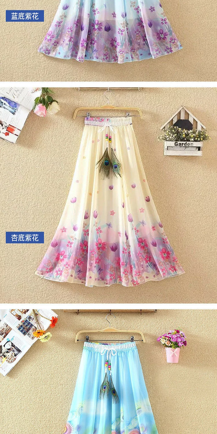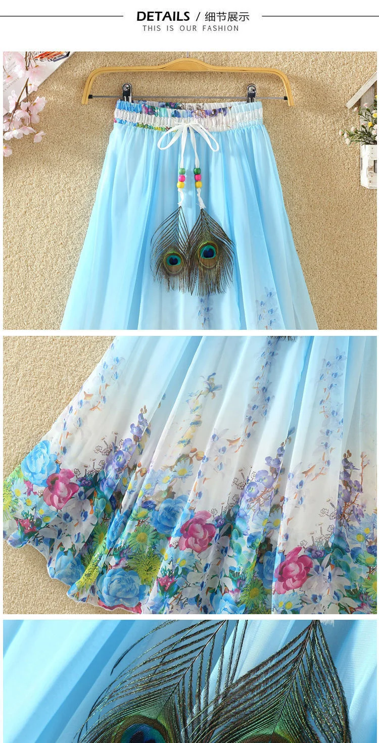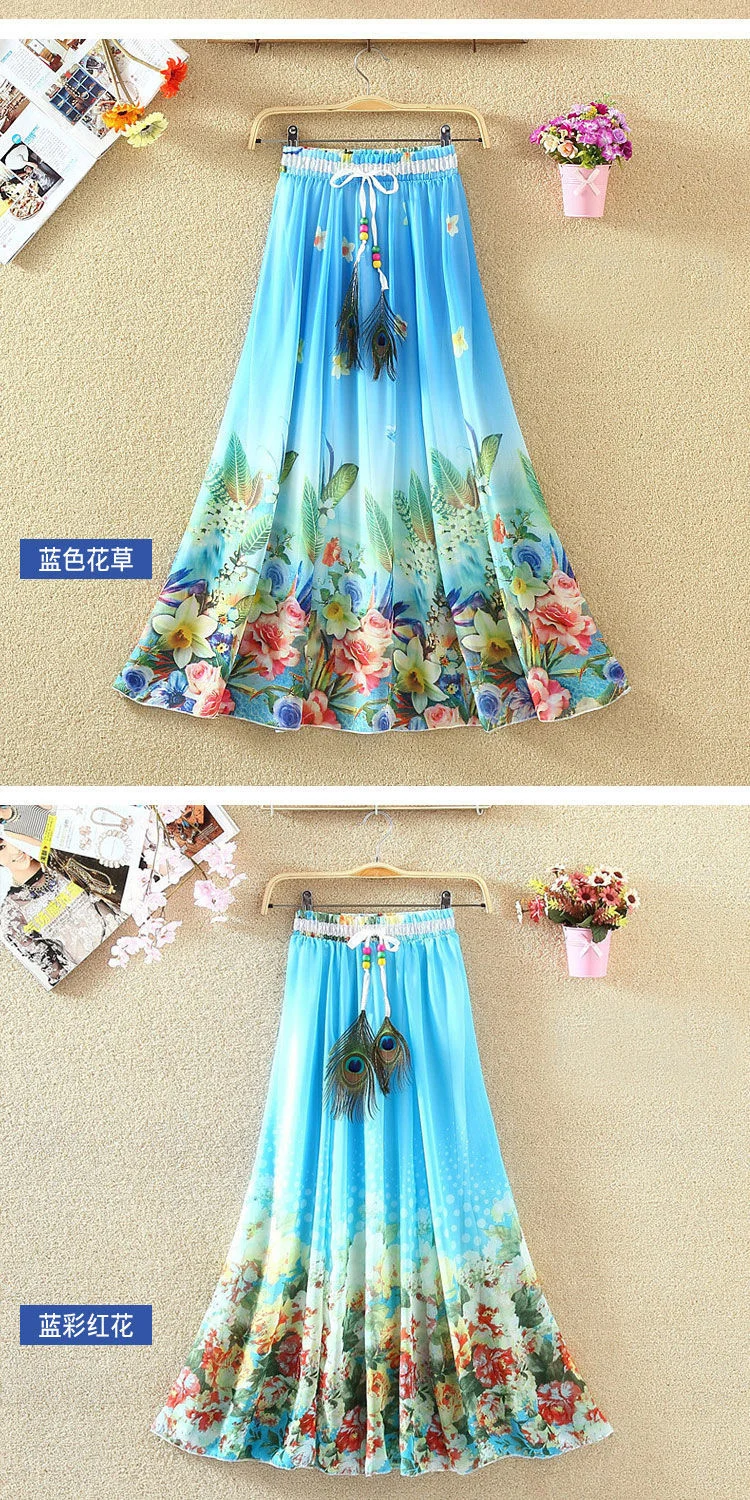 Женские юбки 2021, летняя стильная юбка с принтом, пляжная юбка, шифоновое платье с цветочным принтом, женские юбки, женские юбки