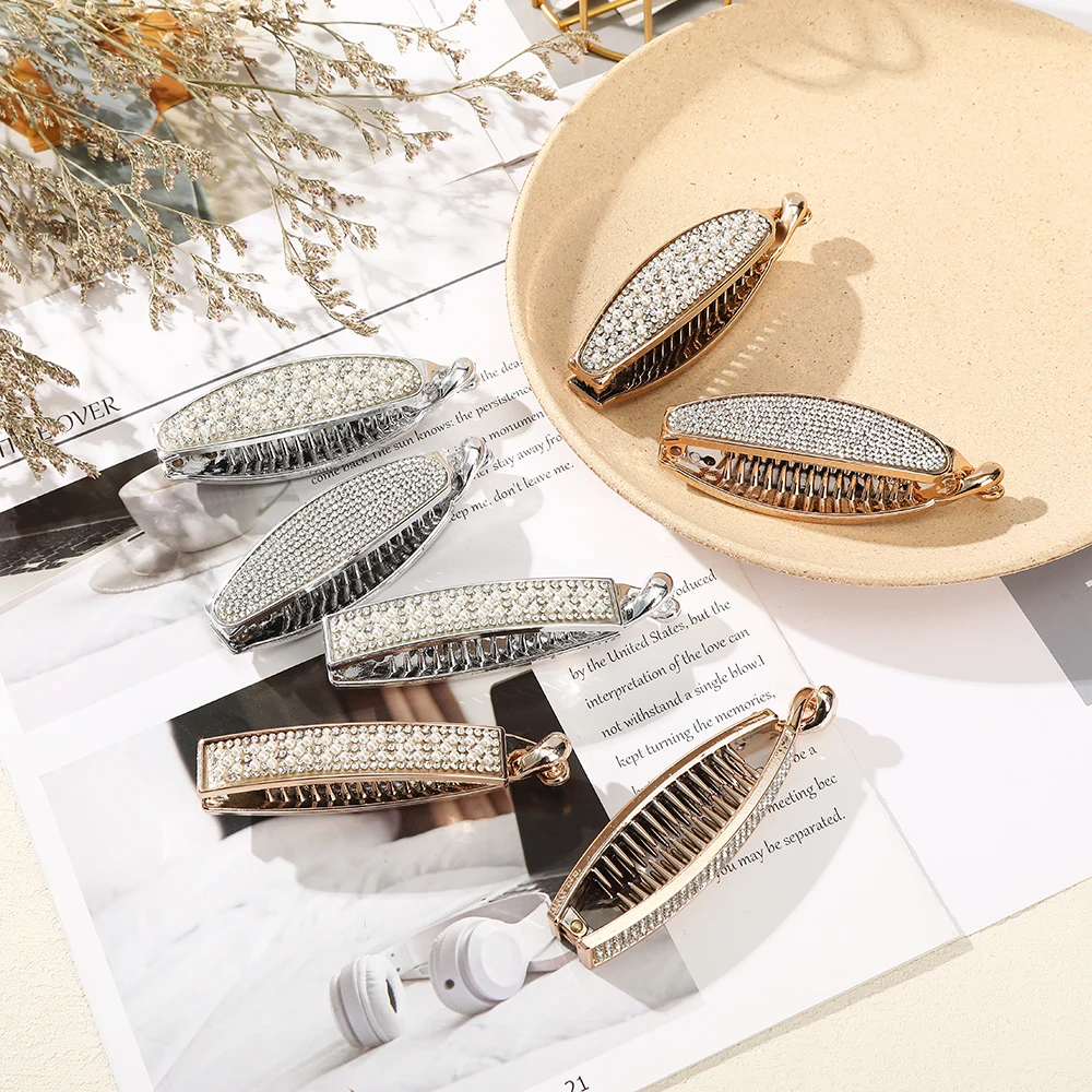 Женские заколки-Когти для волос в форме банана, стразы из молан, заколки для волос, заколки для хвоста, модные аксессуары для волос