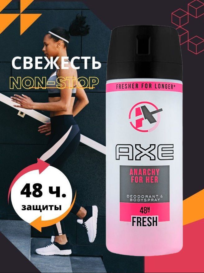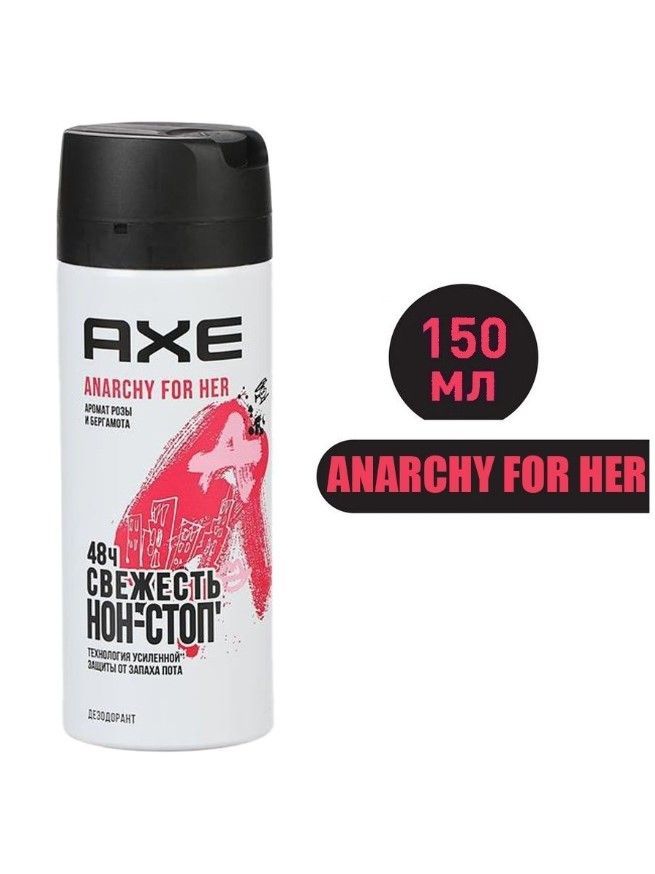 Описание: Страстный аромат беспредела для неё уже здесь! Ароматы Розы и Бергамота. Не оставляет следов и пятен на одежде и не блокирует потовые железы, придавая уверенность в себе на весь день, каждый день и в любой ситуации. Дай волю своей страсти с AXE Anarchy!
