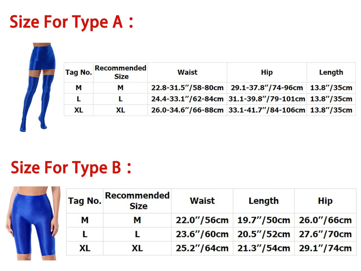 Глянцевый внешний вид, однотонный цвет, мини-юбка с высокой талией, сочетающаяся с парой колготок до бедра.