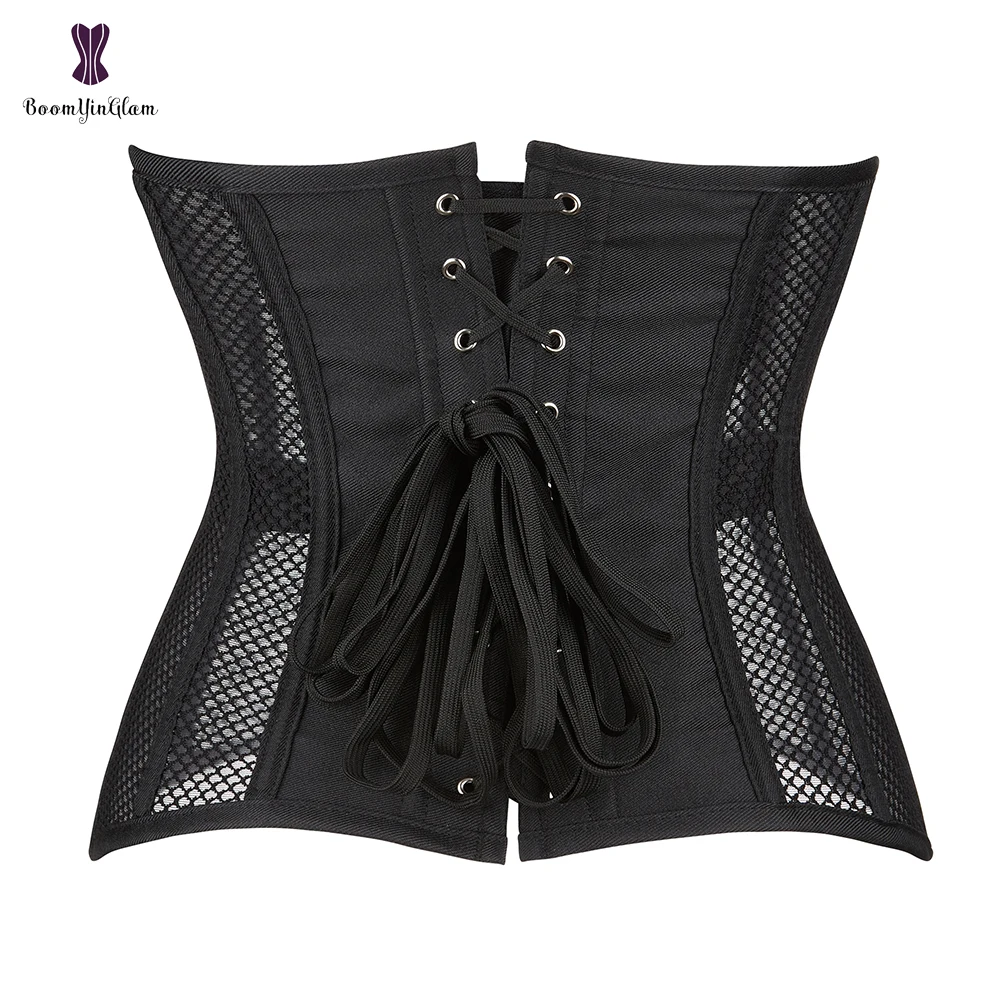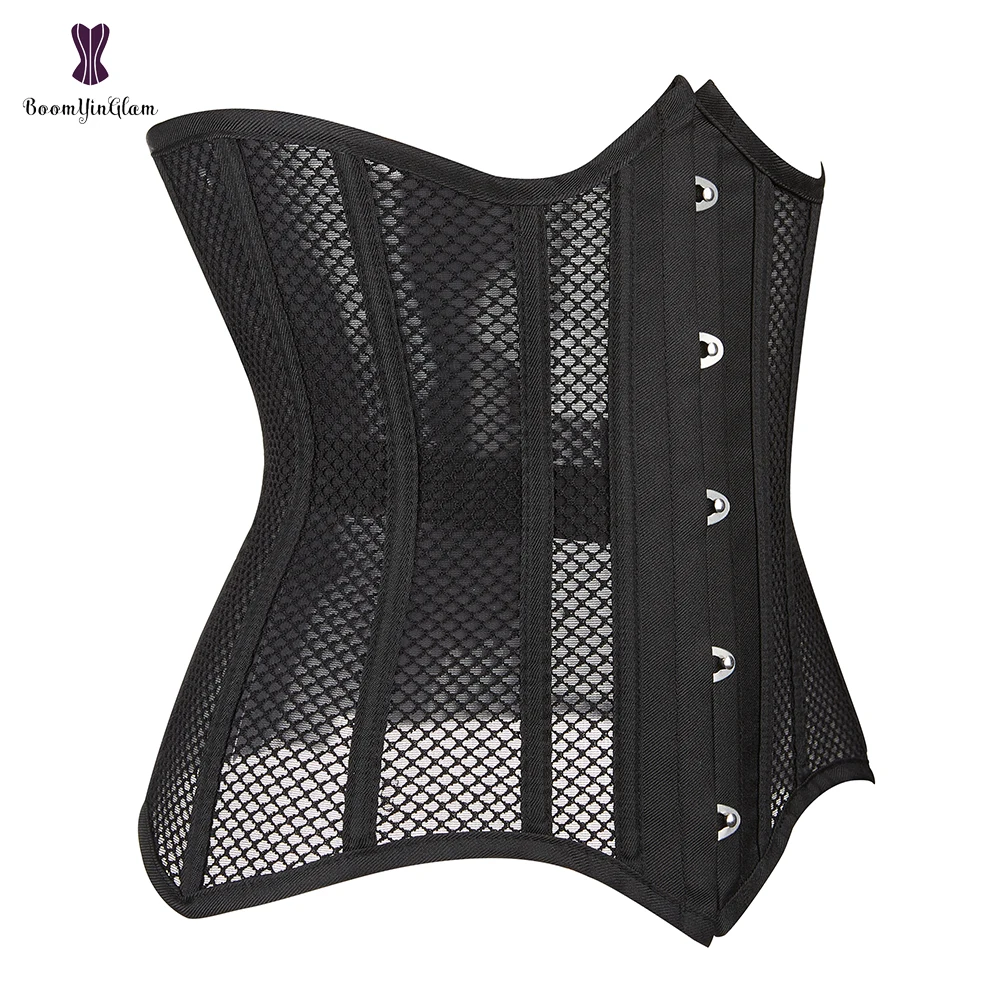 Женский черный сетчатый корсет под грудью, корсет со стальными косточками, тонкие ремни для тела, уличная одежда, Прозрачный Корсет