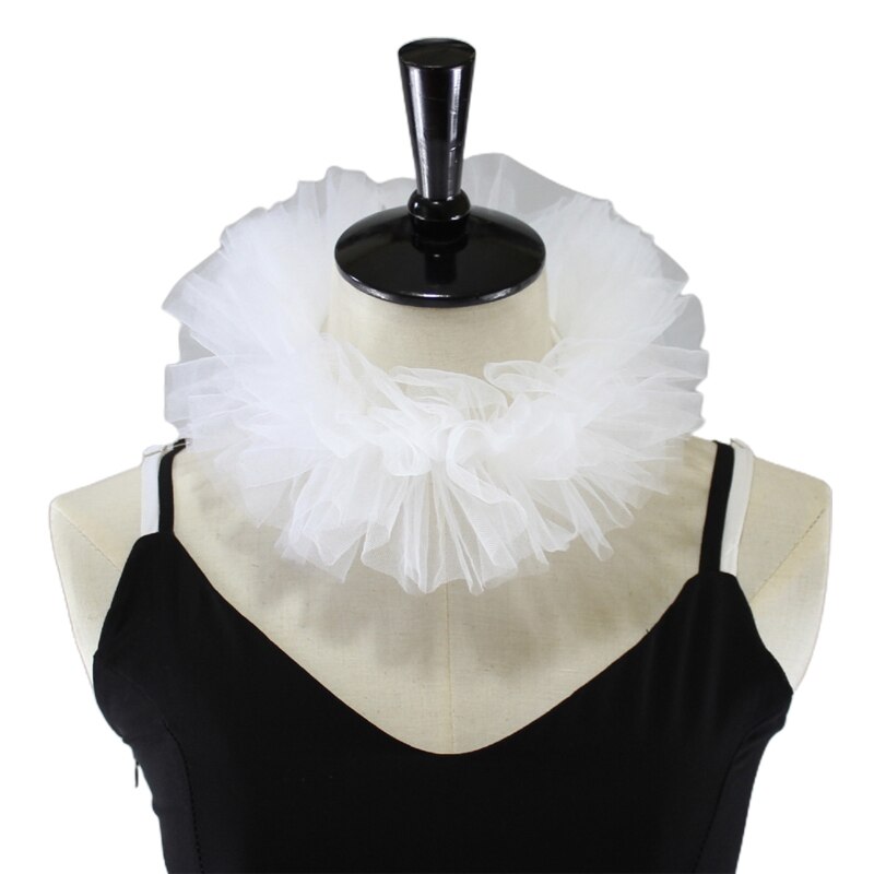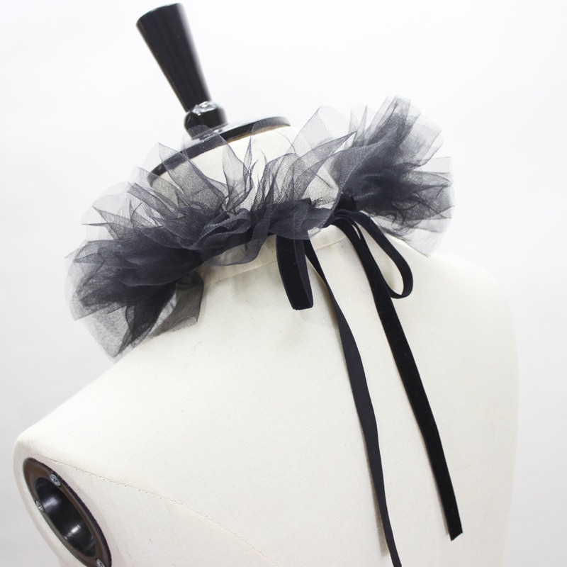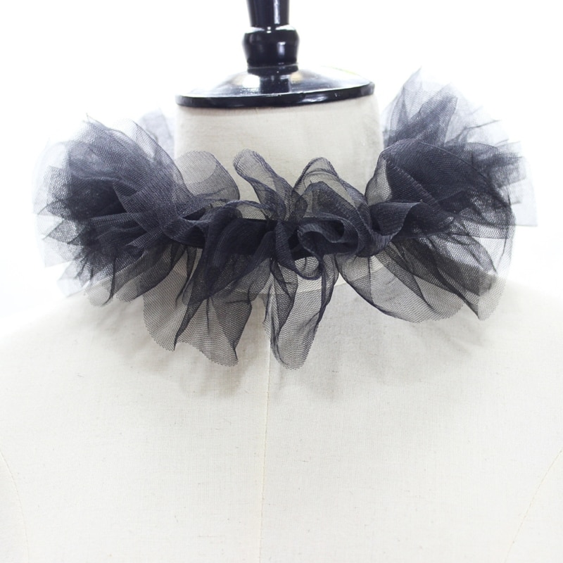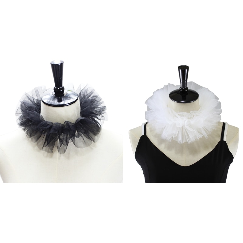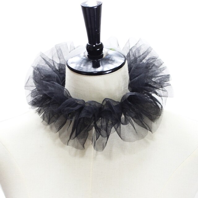 Маленький воротник из многослойного тюля с рюшами, классический черный/белый цвет, регулируемая лента на шнуровке.