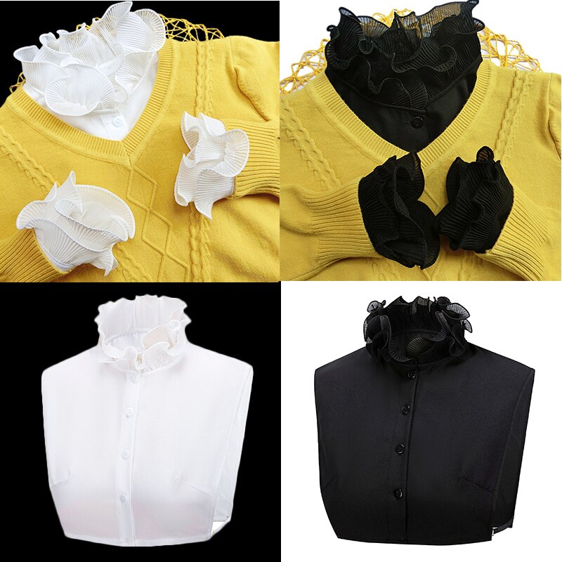 Женский хлопковый кружевной воротник поддельный съемный воротник черный белый воротник с оборками накладные воротники галстуки с накладными рукавами Дамская одежда с круглым отворотом