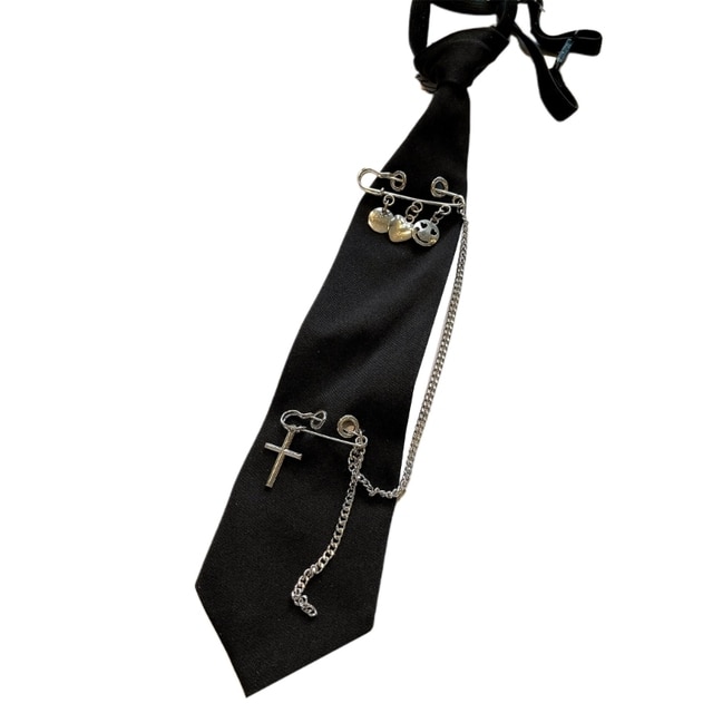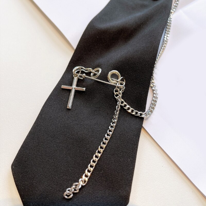 Готический панк, кресты и кисточка с улыбкой, Металлическая Булавка и декоративная металлическая цепочка, черные галстуки на шее для женщин и мужчин.