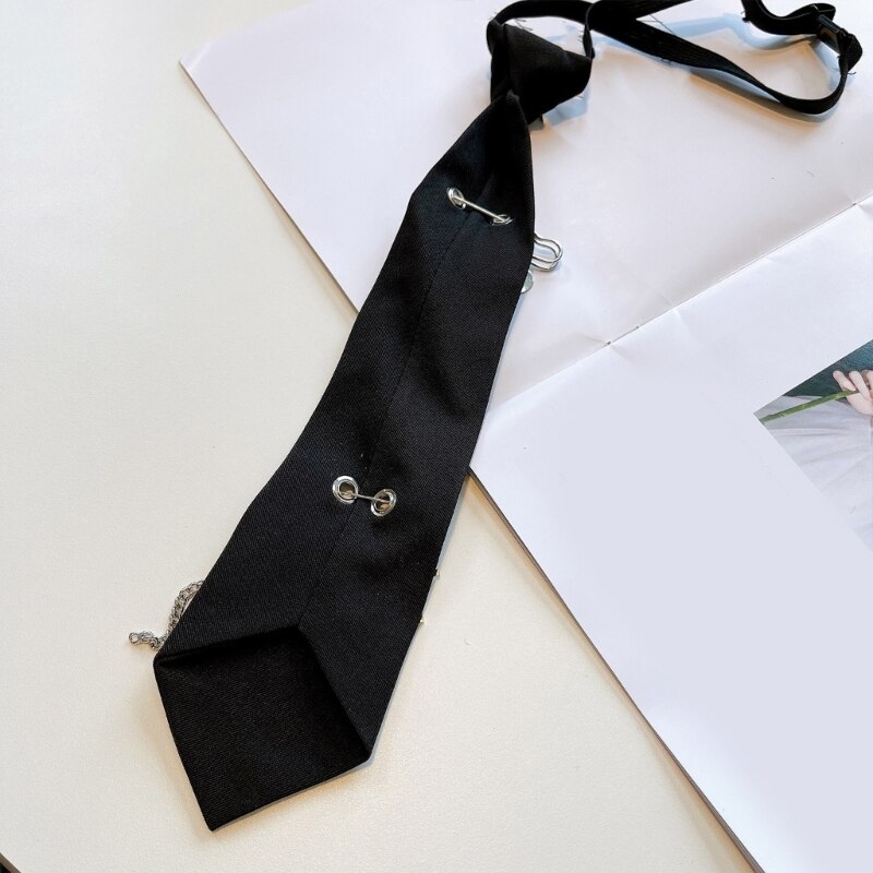 Женский и мужской предварительно привязанный галстук, металлическая цепочка, школьная форма с кисточкой, черный галстук D5QB