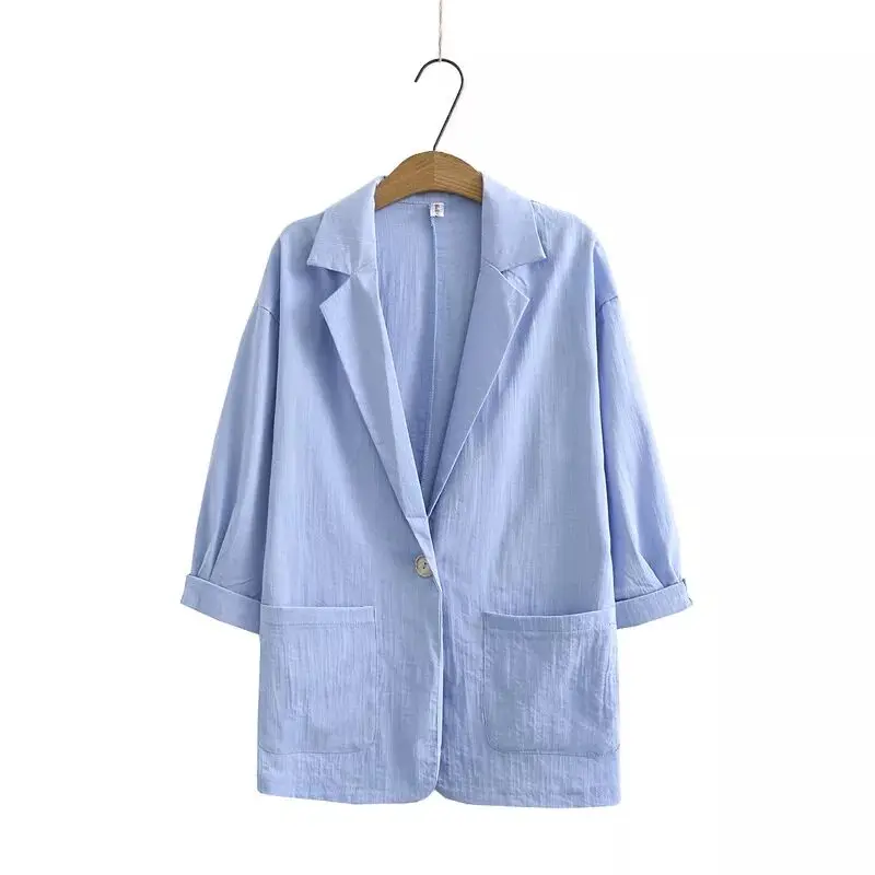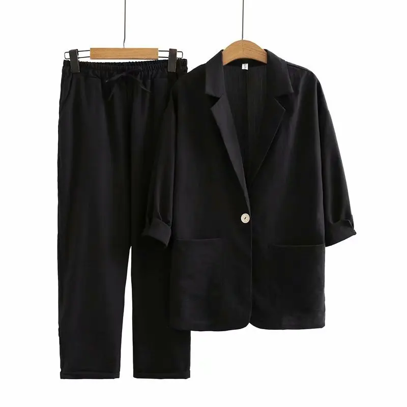 Женский комплект из 2 предметов, однотонный хлопково-льняной блейзер с отложным воротником и длинными рукавами, свободные универсальные брюки для отдыха, весна-лето