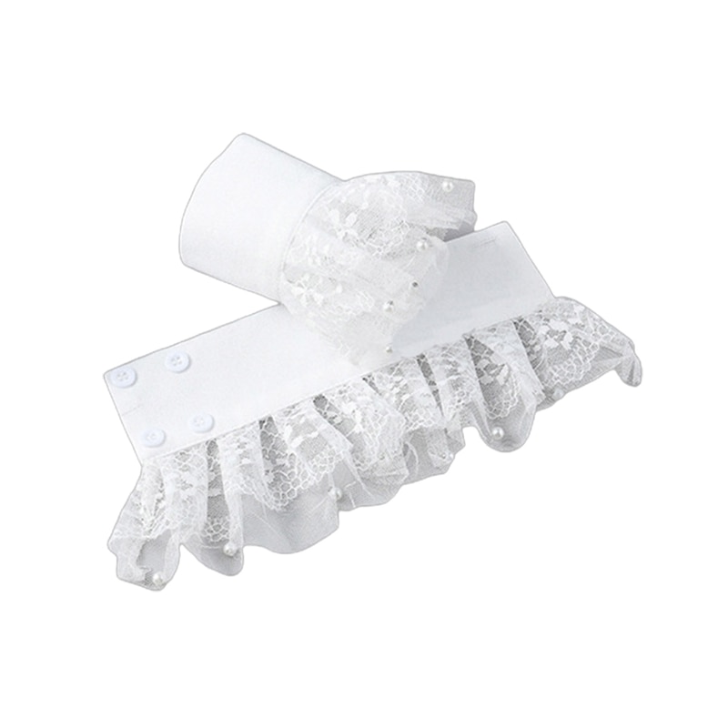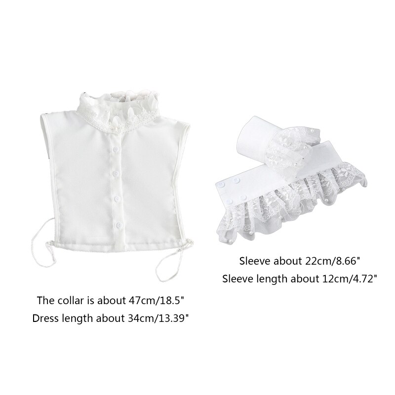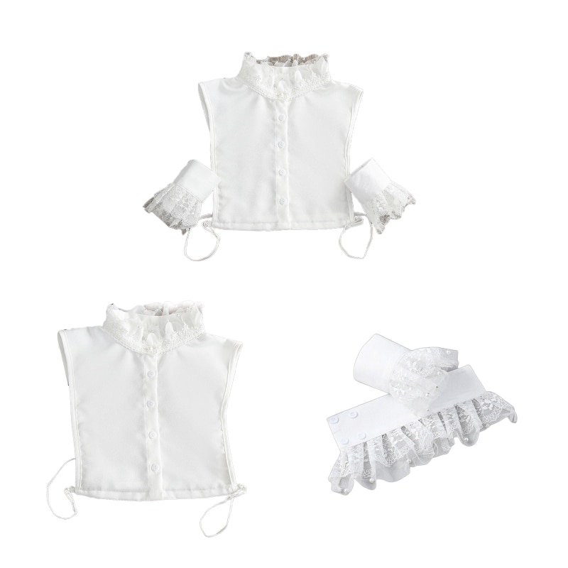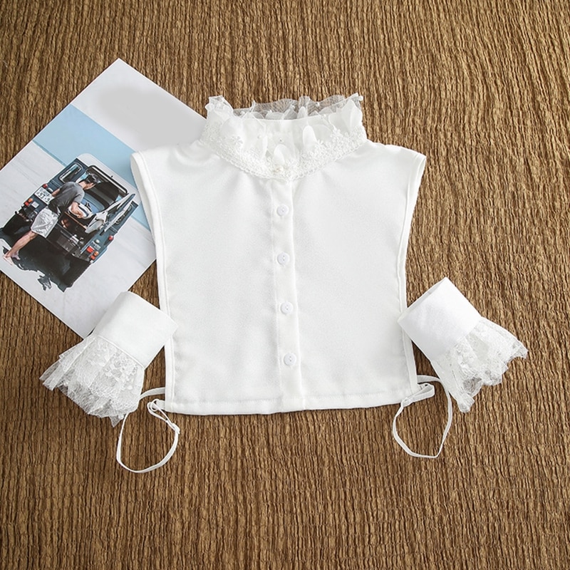 Женский комплект из 2 предметов с ложным воротником и искусственными рукавами, милая Цветочная кружевная рубашка с оборками и воротником-стойкой, короткая рубашка с жемчужными бусинами, манжеты с рогами