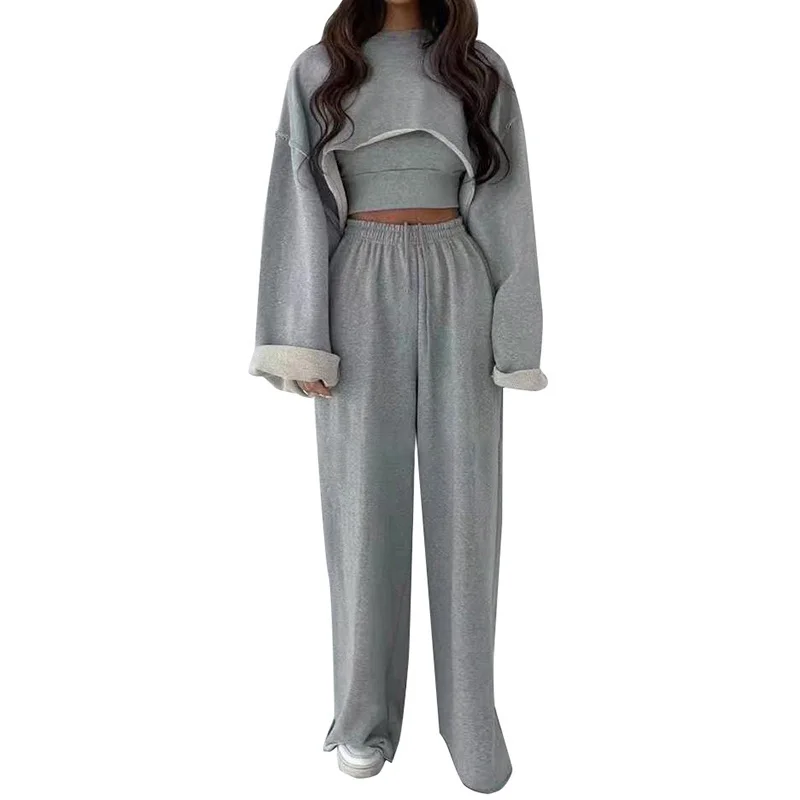 Женский комплект из трех предметов TWOTWINSTYLE, белый топ без рукавов с круглым вырезом и длинными рукавами, широкие брюки, повседневные комплекты, новинка 2022