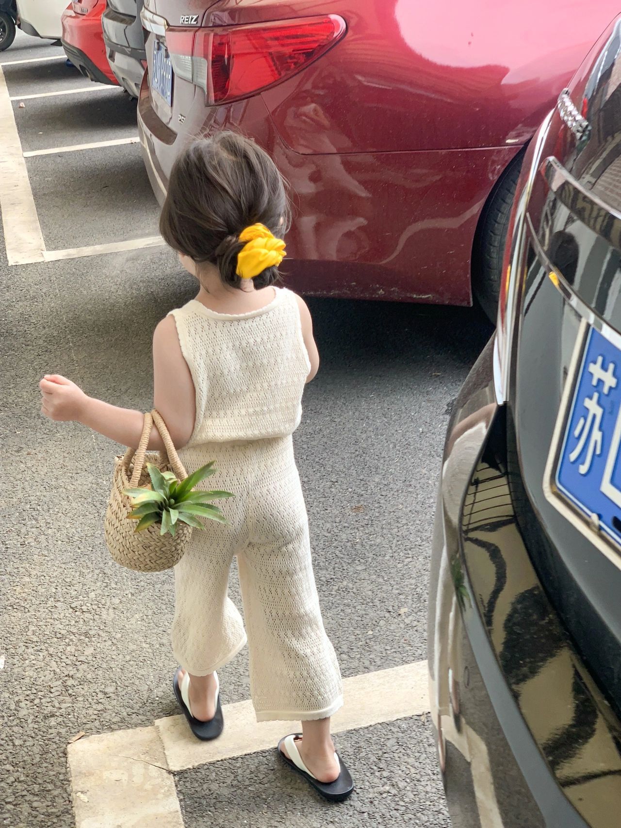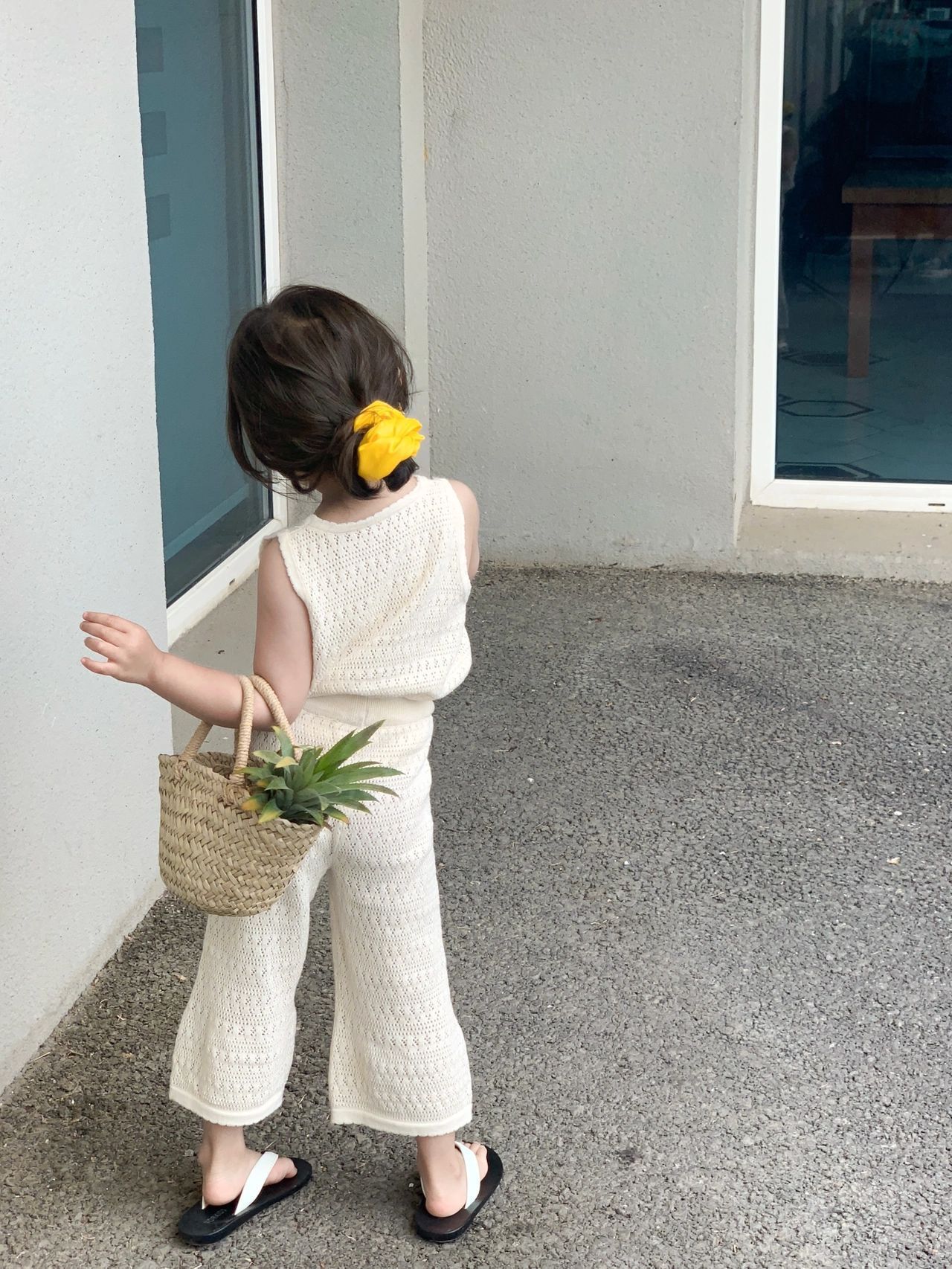 Женский комплект одежды, лето 2023, корейский Тонкий Трикотажный костюм для девочек, дышащий жилет с вырезами + широкие брюки, костюм из двух предметов