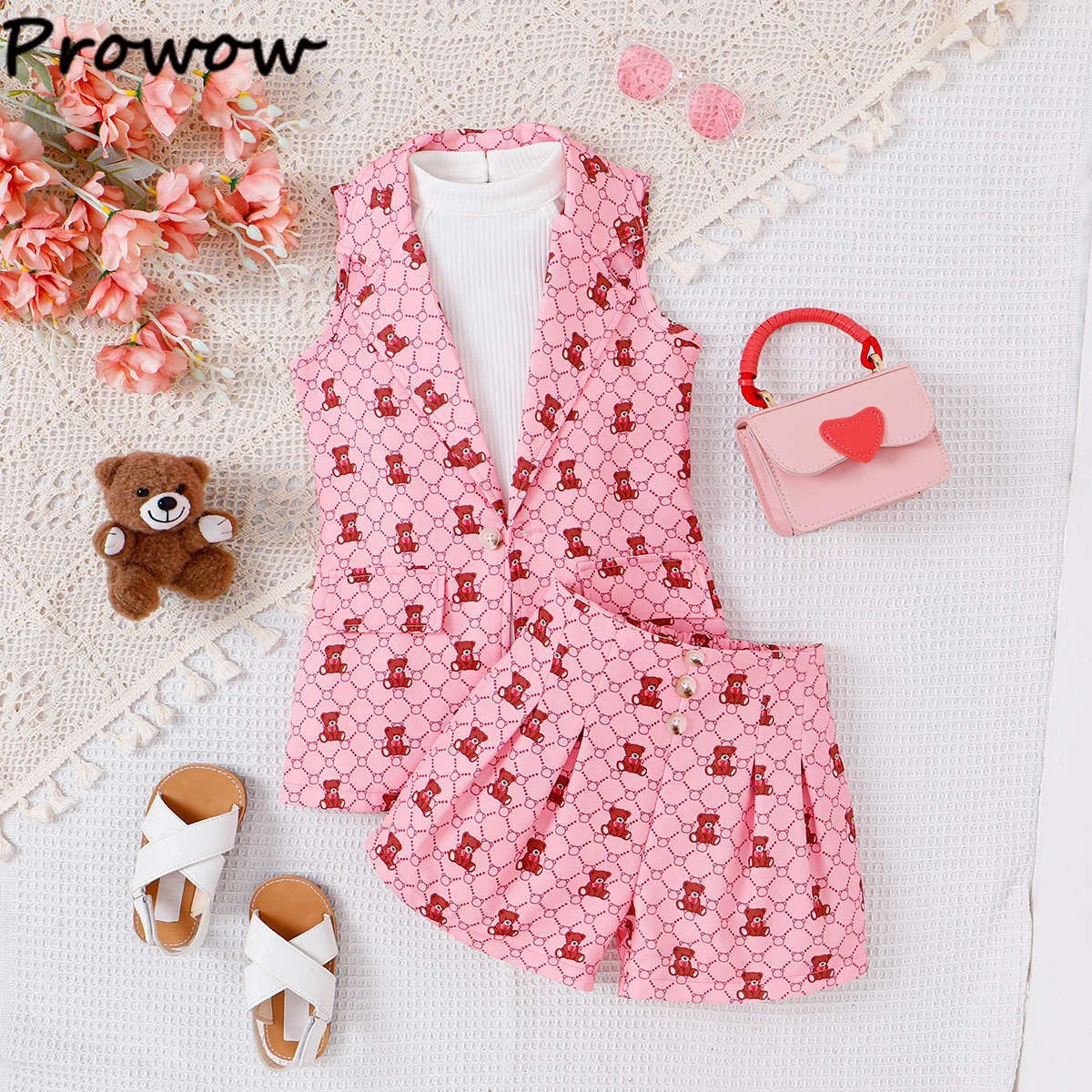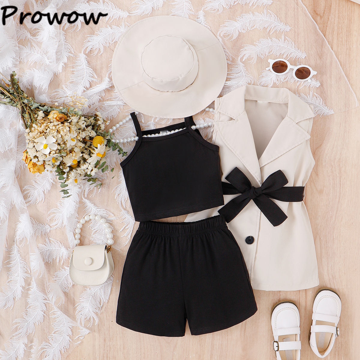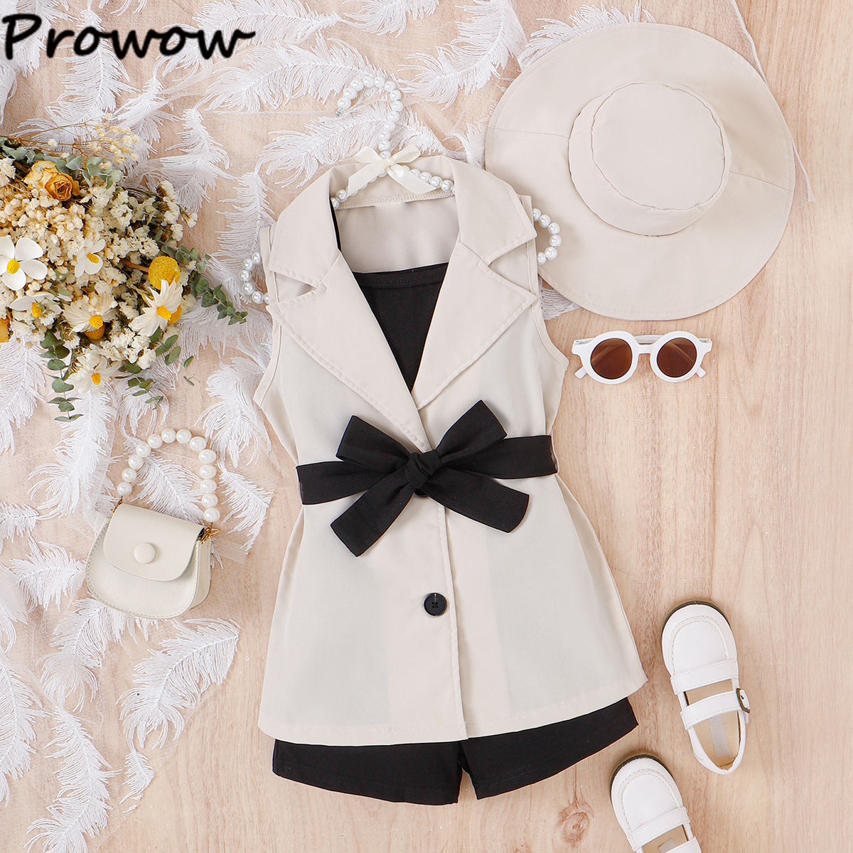 Женский комплект одежды Prowow, блейзер с отложным воротником, куртка на пуговицах, короткий топ и однотонные шорты с поясом, 4 предмета, детская одежда с шляпой
