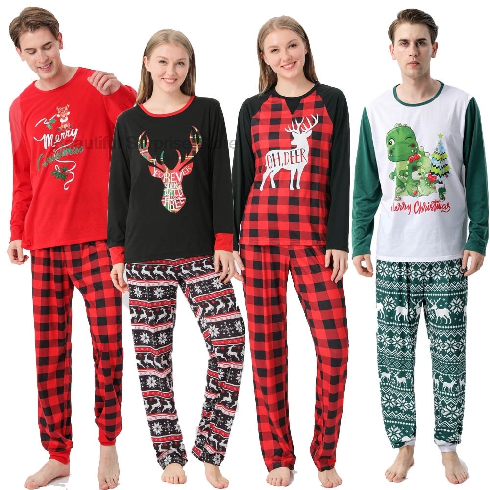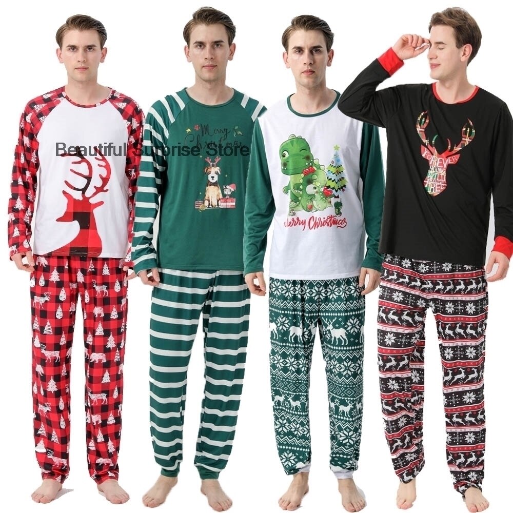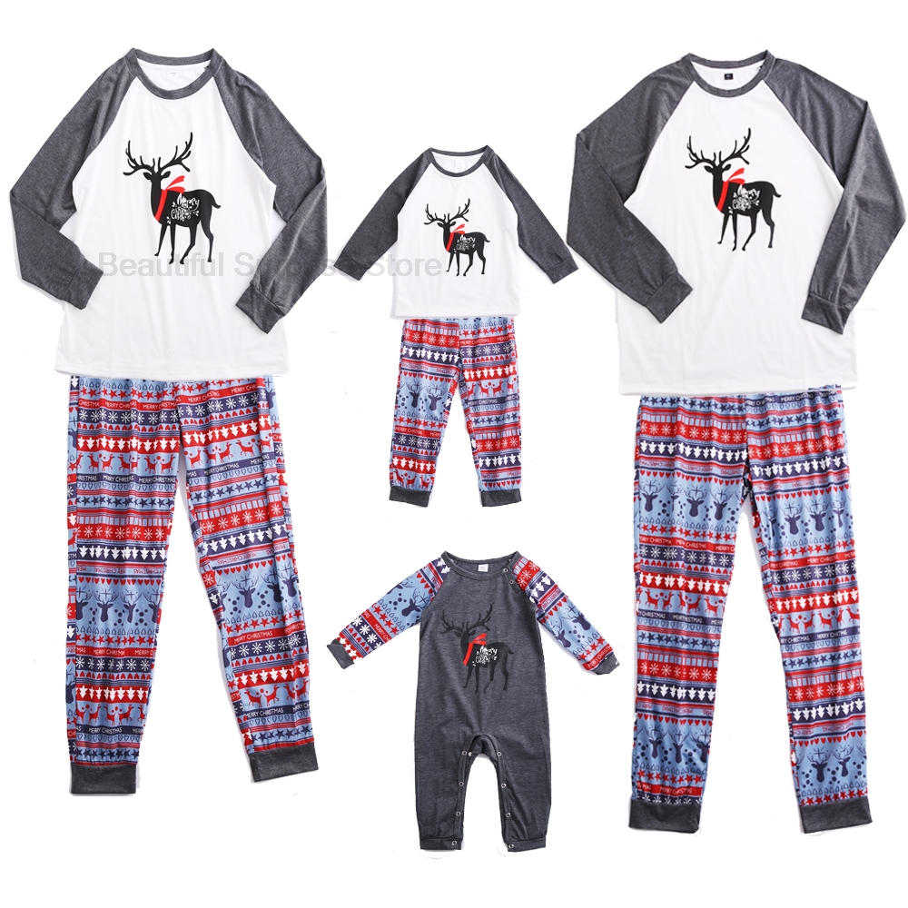 Женский комплект, одинаковая семейная Одежда для взрослых и детей, Топ с длинным рукавом + брюки, одежда для сна с рождественским оленем и динозавром, комплект для сна
