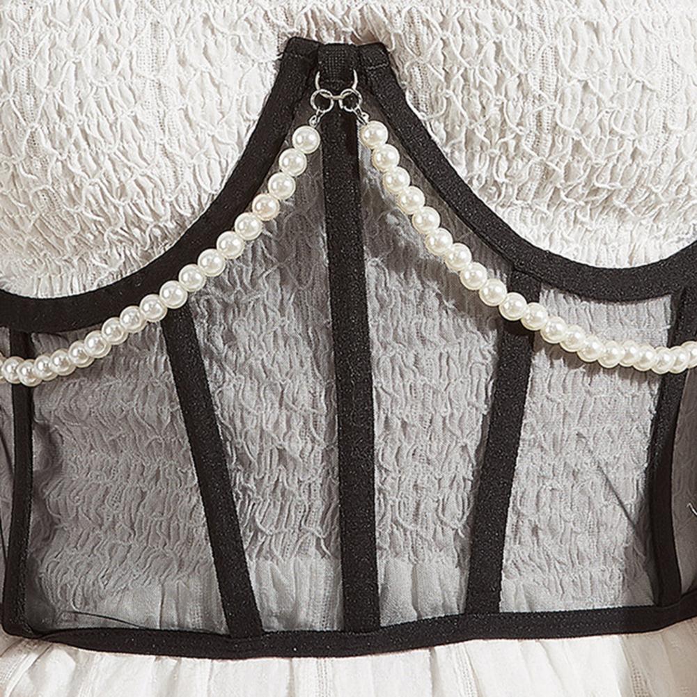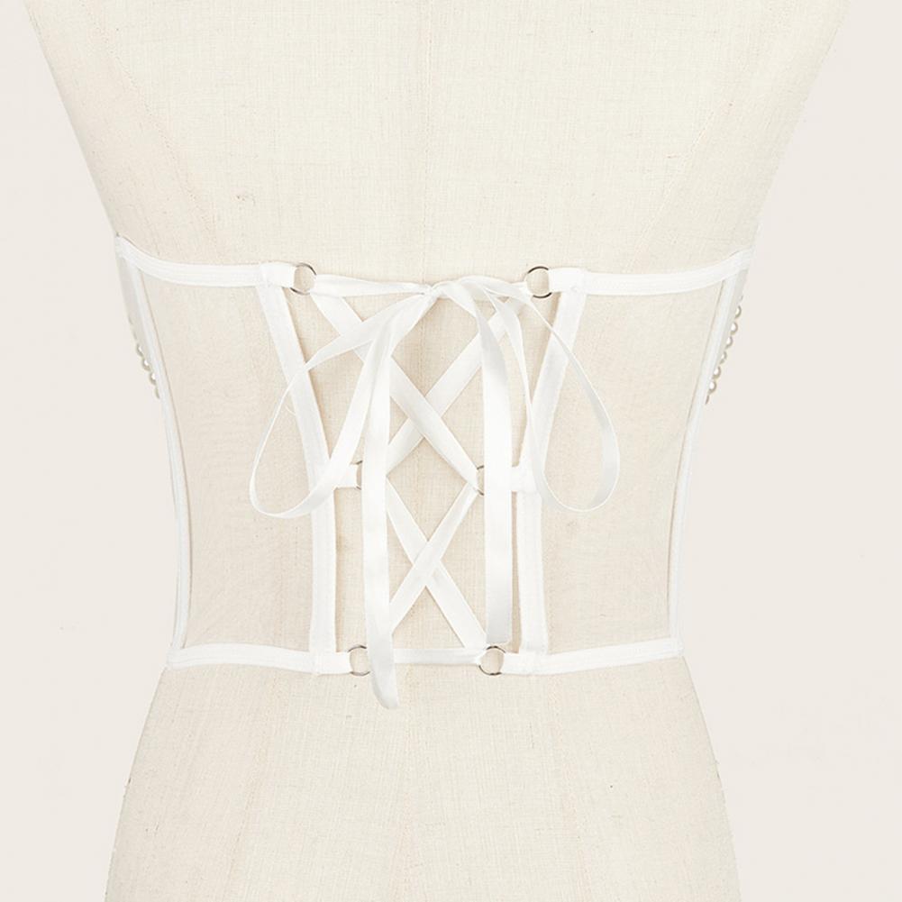 Женский корсет Прозрачный тонкий декор из искусственного жемчуга Регулируемая сетчатая спичка Одежда на шнуровке Полая Талия Cincher Корсет Аксессуар для одежды