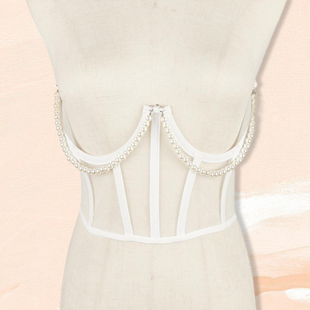 Женский корсет, прозрачный, тонкий, с искусственным жемчугом