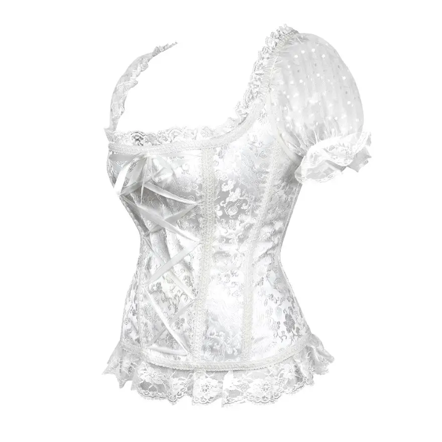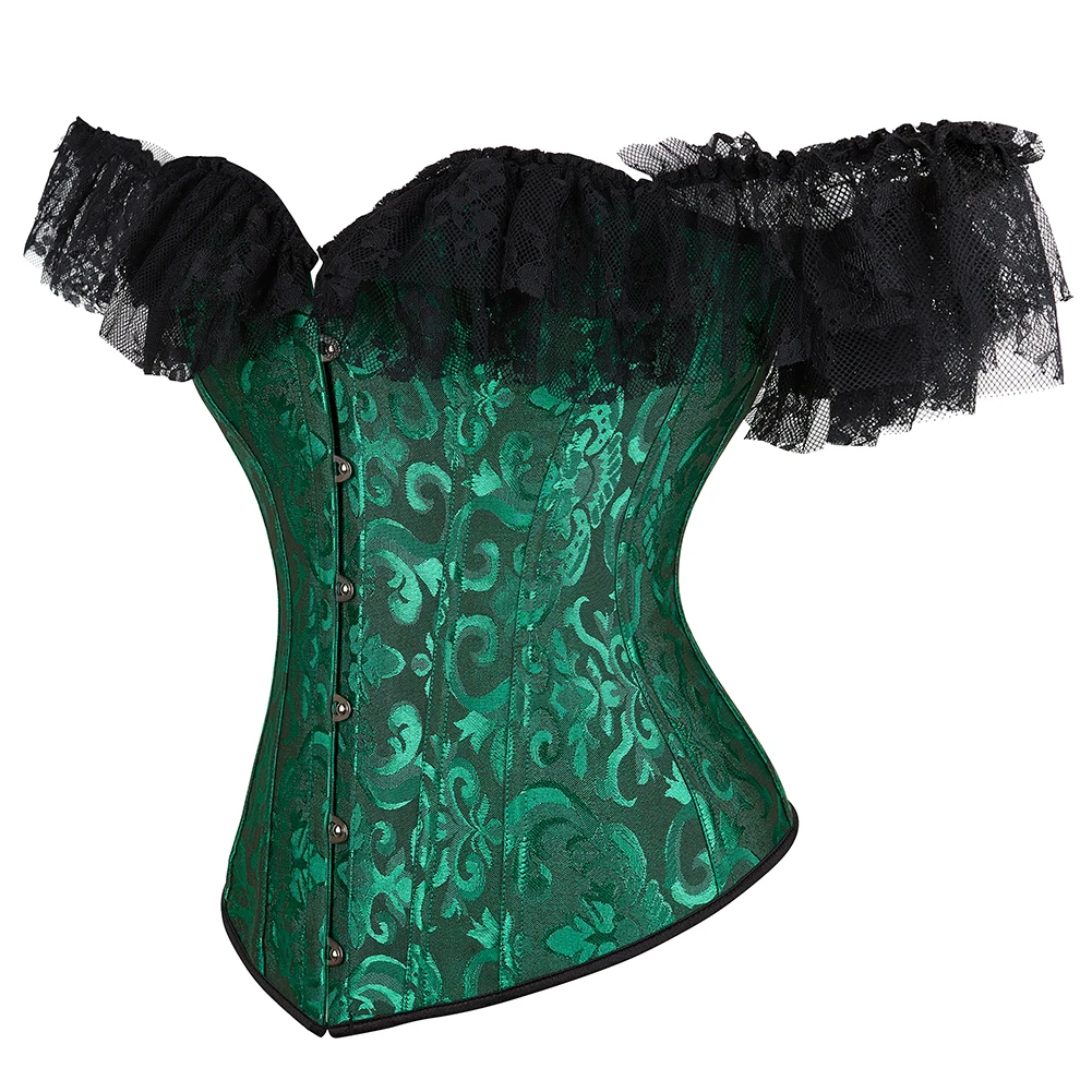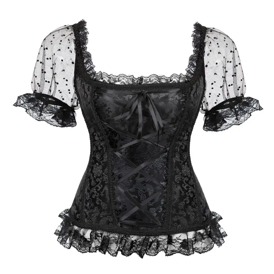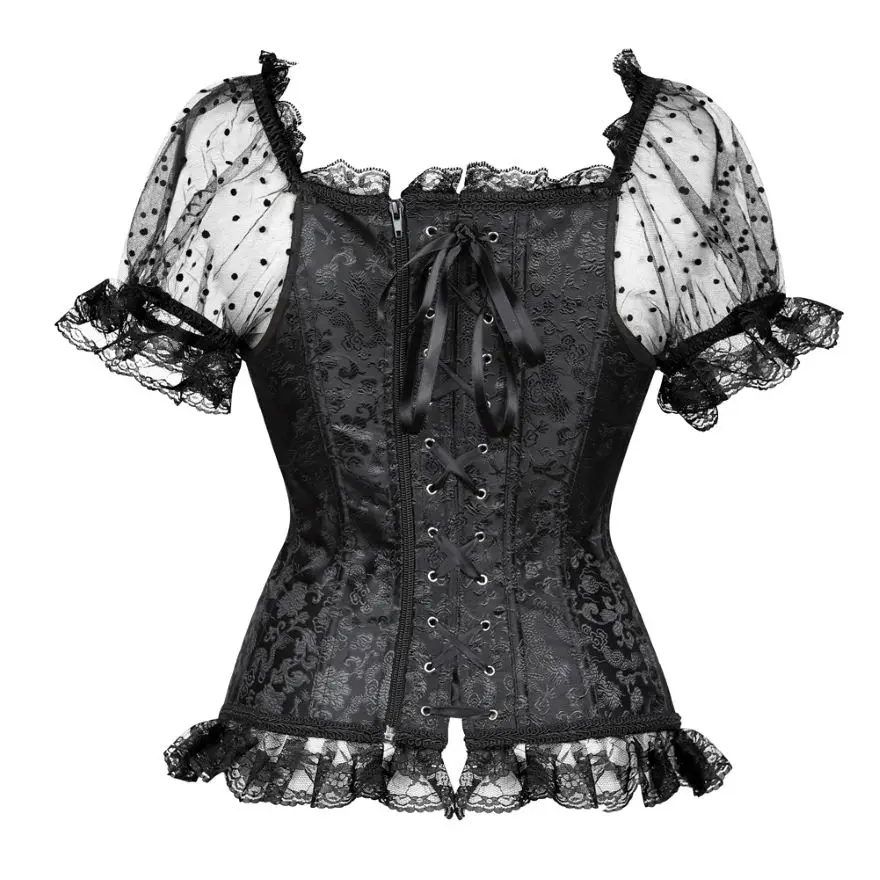 Женский корсет с открытыми плечами, прозрачный кружевной топ с рукавами, корсет с оборками, блузка, винтажный цветочный корсет на талии, пикантное модное бюстье